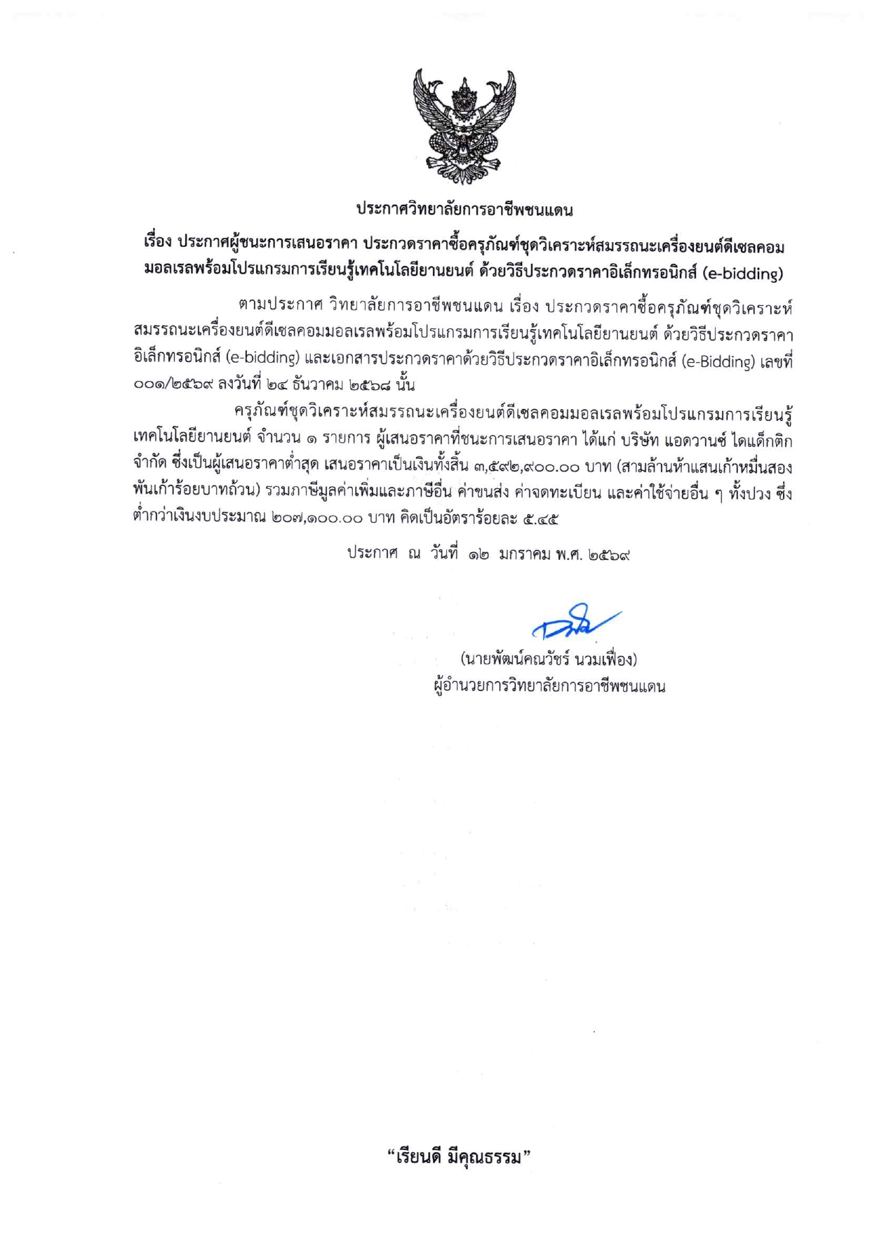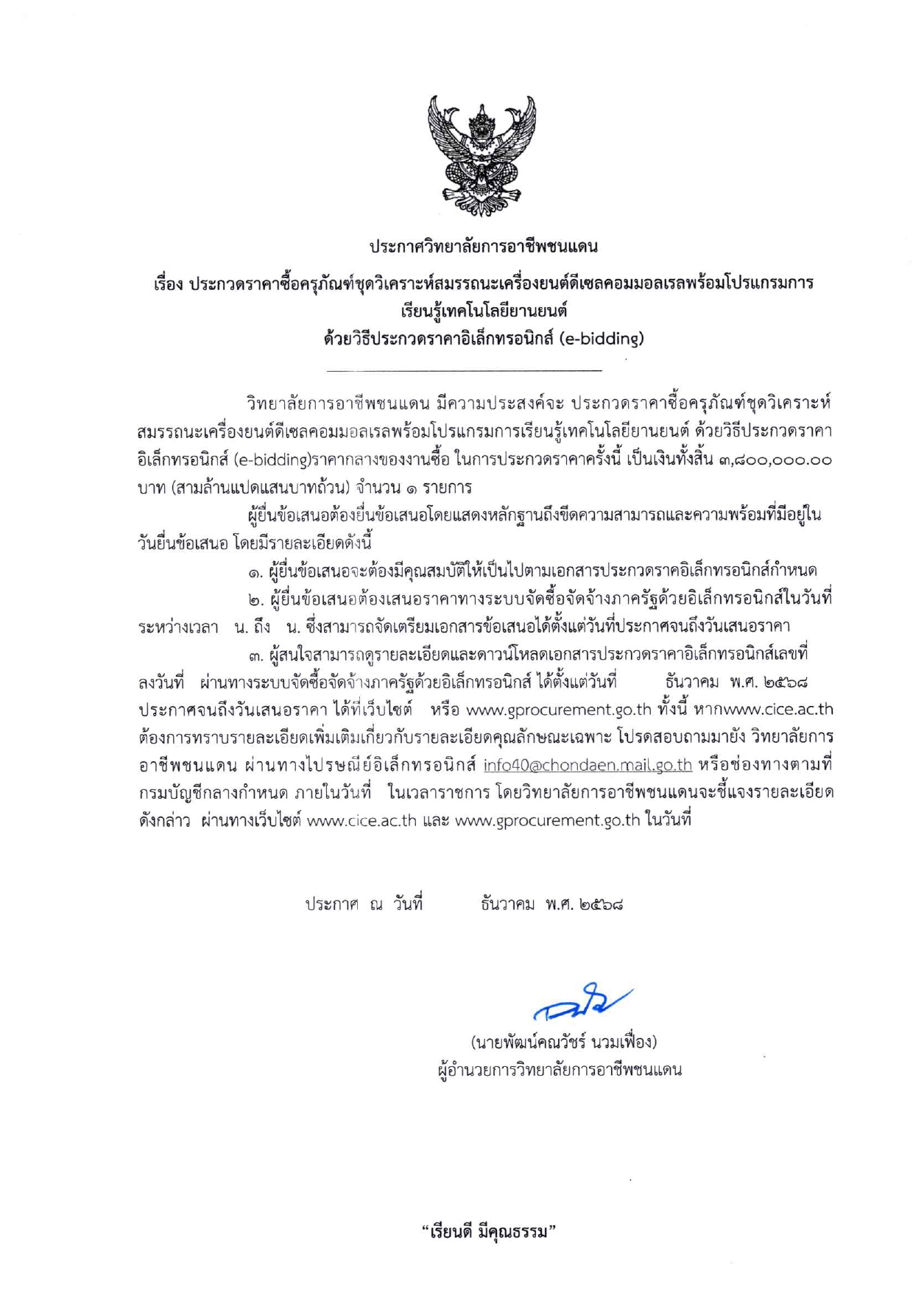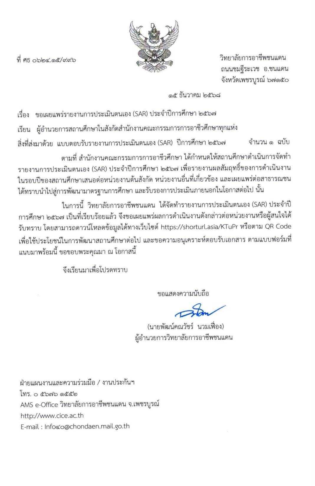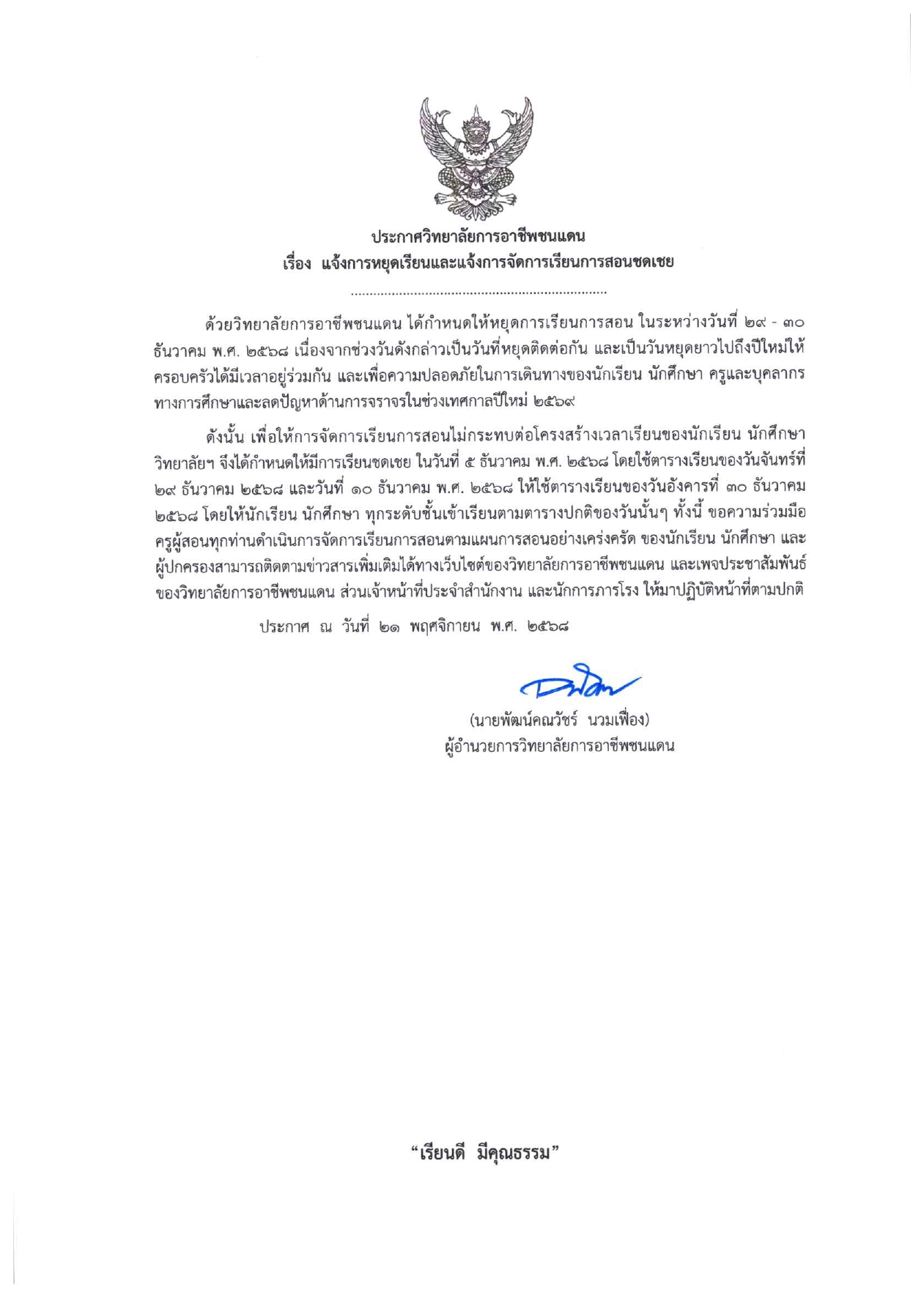 วันศุกร์ที่ 7 พฤศจิกายน 2568 เวลา 08:30 นายพัฒน์คณวัชร์ นวมเฟื่อง ผู้อำนวยการวิทยาลัยการอาชีพชนแดน พร้อมด้วยผู้บริหาร คณะครู บุคลากรทางการศึกษา และนักเรียน นักศึกษา วิทยาลัยการอาชีพชนแดน เข้าร่วมบริจาคโลหิต เพื่ออุทิศถวายเป็นพระราชกุศลครบรอบ (15วัน) ปัณสมวาร สมเด็จพระนางเจ้าสิริกิติ์ พระบรมราชินีนาถ พระบรมราชชนนีพันปีหลวง แสดงความจงรักภักดี และน้อมรำลึกในพระมหากรุณาธิคุณอันหาที่สุดมิได้ ณ โดมเอนกประสงค์ วิทยาลัยการอาชีพชนแดน