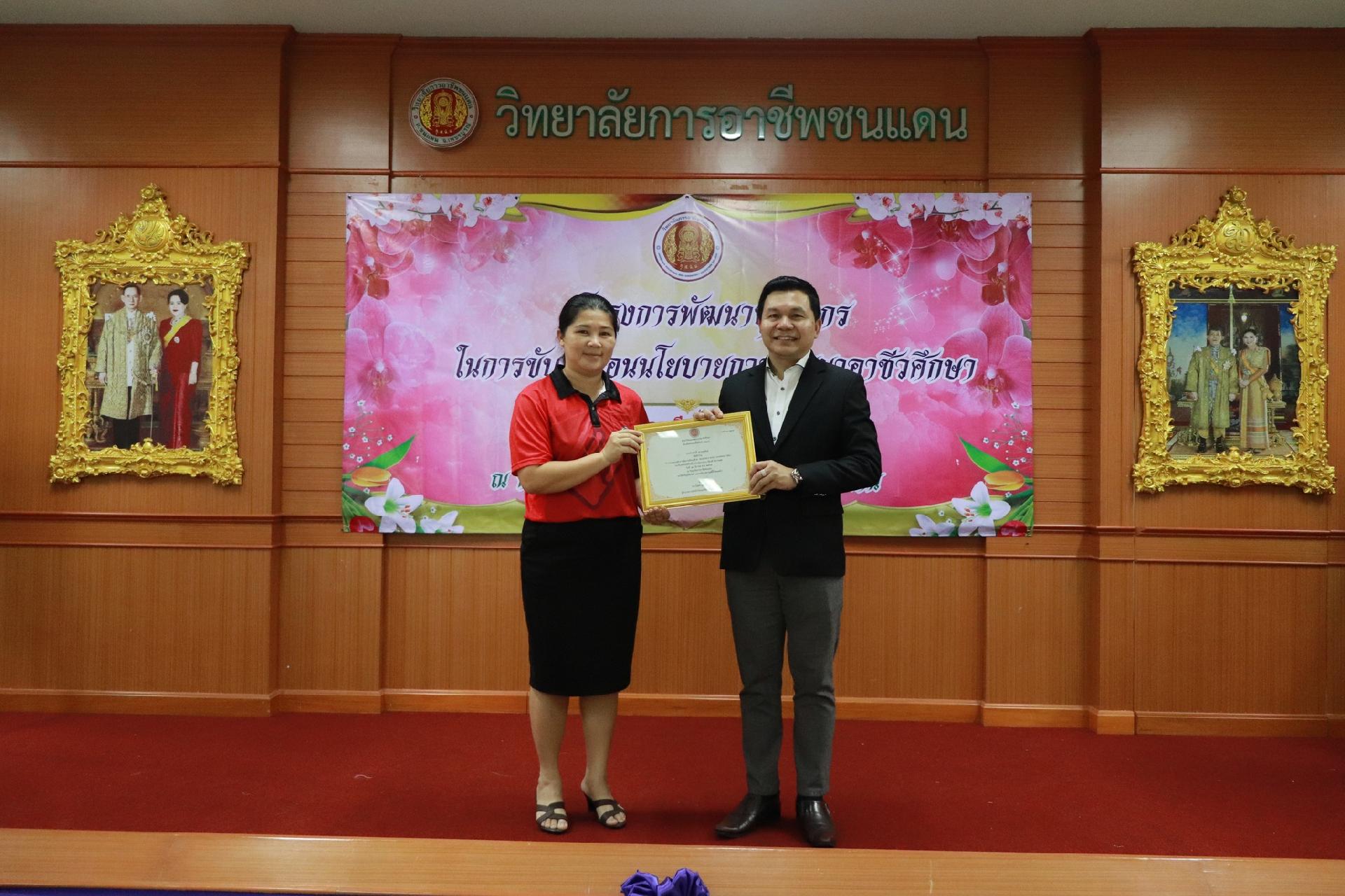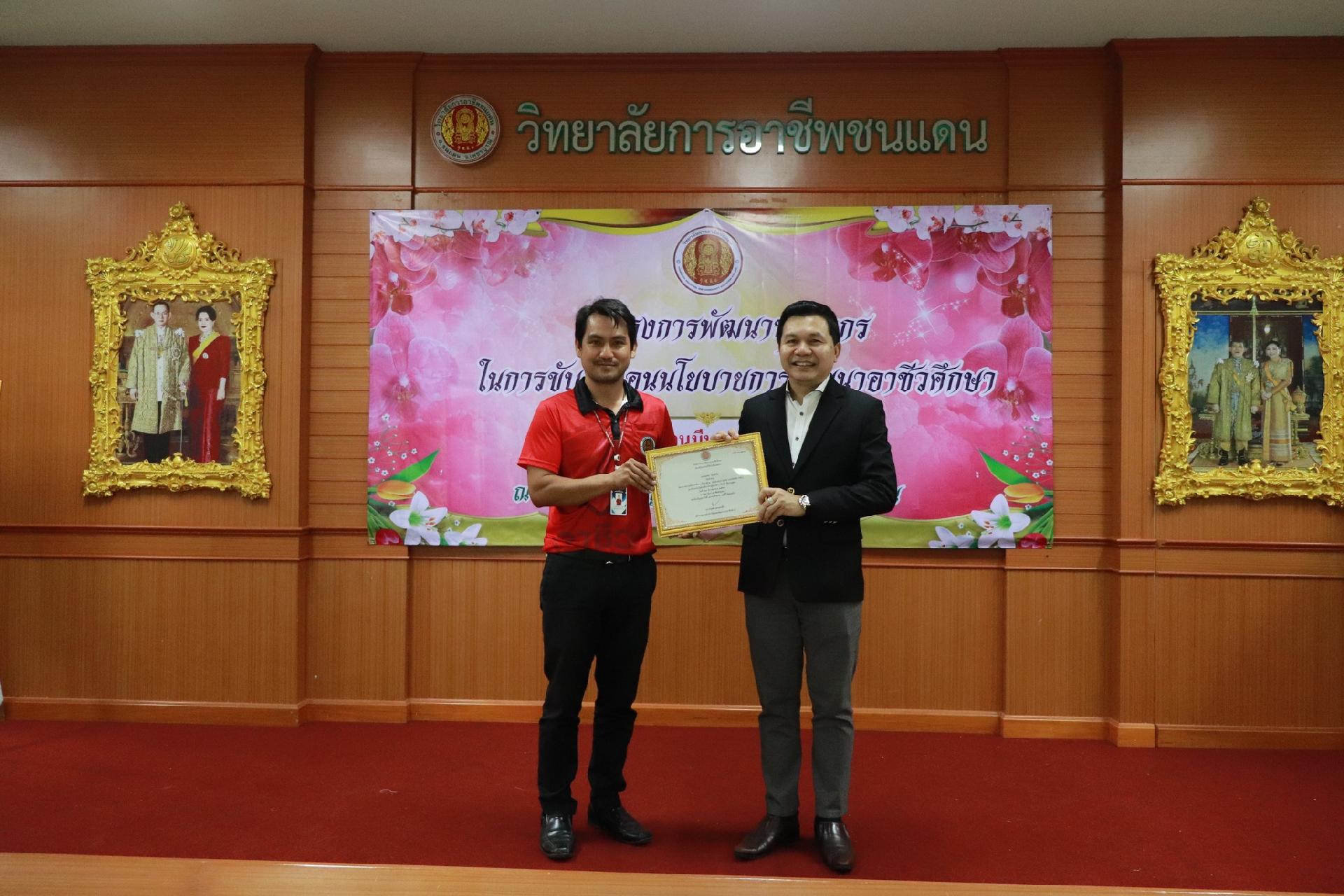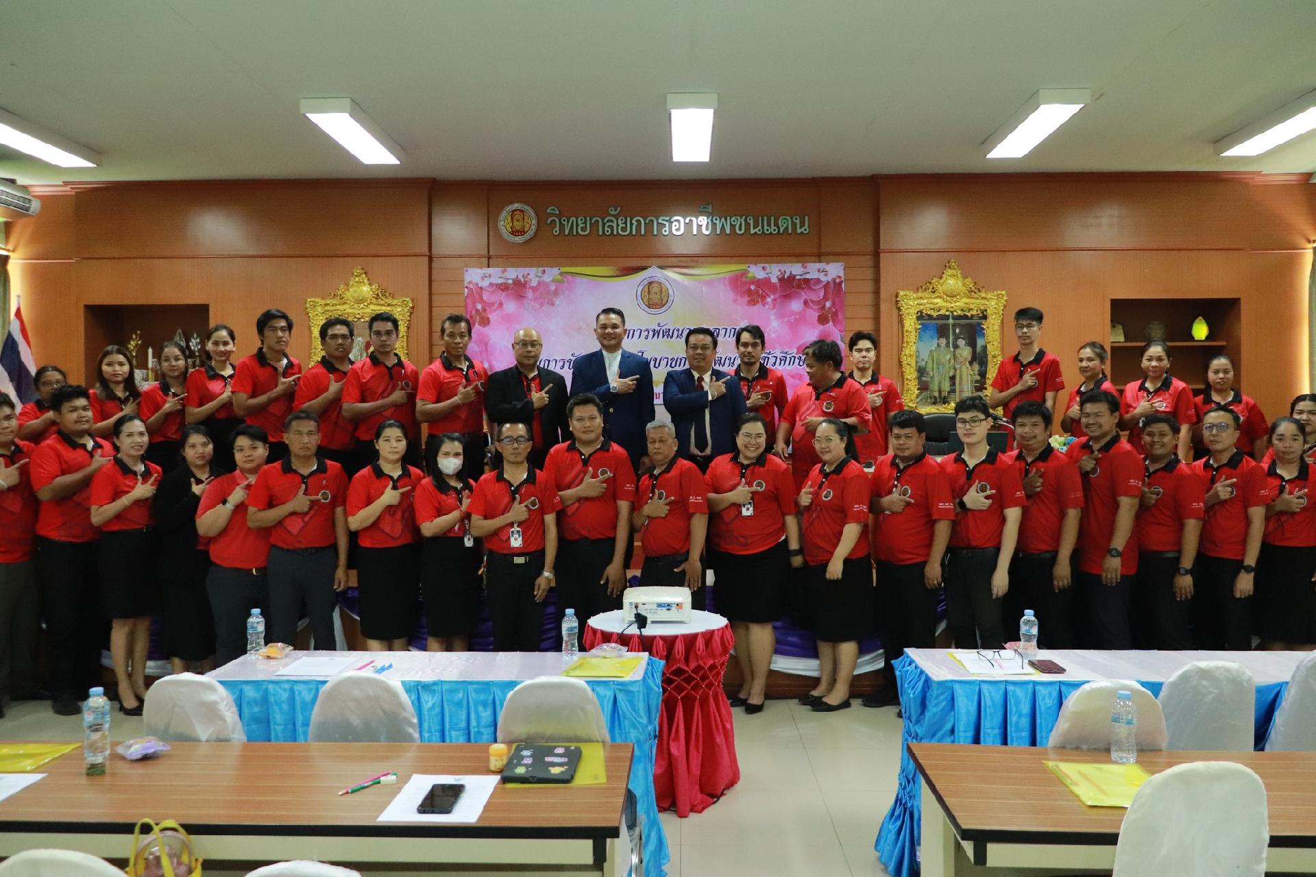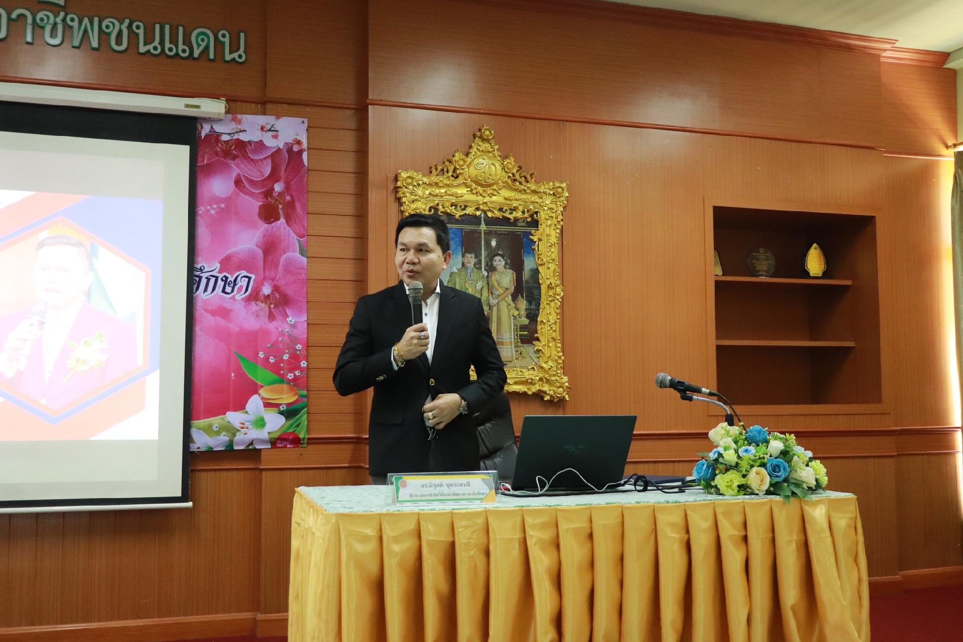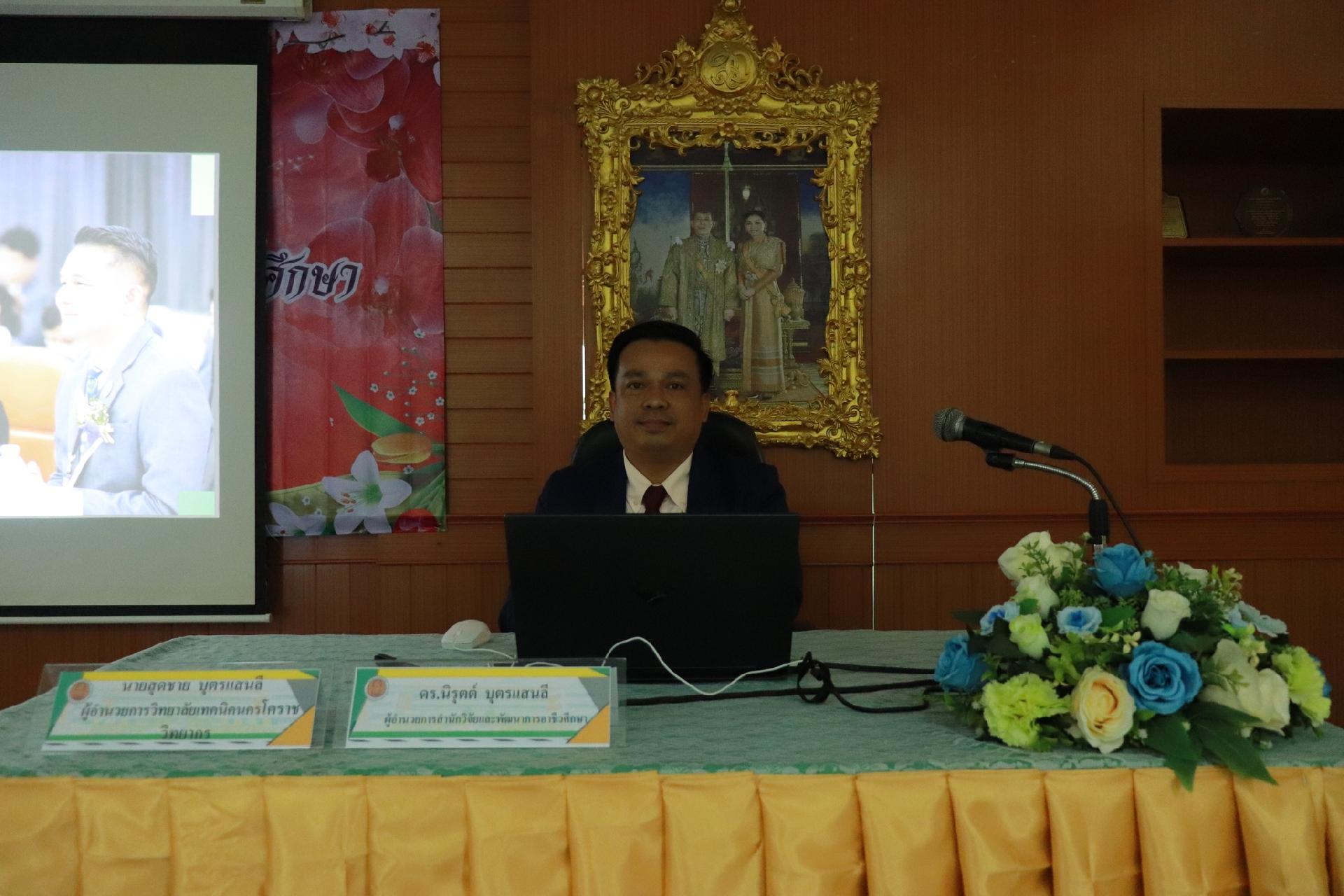 | รายละเอียดกิจกรรม | การอบรมโครงการพัฒนาบุคลากรในการขับเคลื่อนนโยบายการพัฒนาอาชีวศึกษา ยกระดับการจัดการเรียนรู้ด้วย PBL รองรับเทคโนโลยีเปลี่ยนโลกสู่แนวทาง เรียนดี มีความสุข โดย ดร.นิรุตต์ บุตรแสนลี ผู้อำนวยการสำนักวิจัยและสำนักพัฒนาการอาชีวศึกษา และนายสุดชาย บุตรแสนลี ผู้อำนวยการวิทยาลัยเทคนิคนครโคราช |