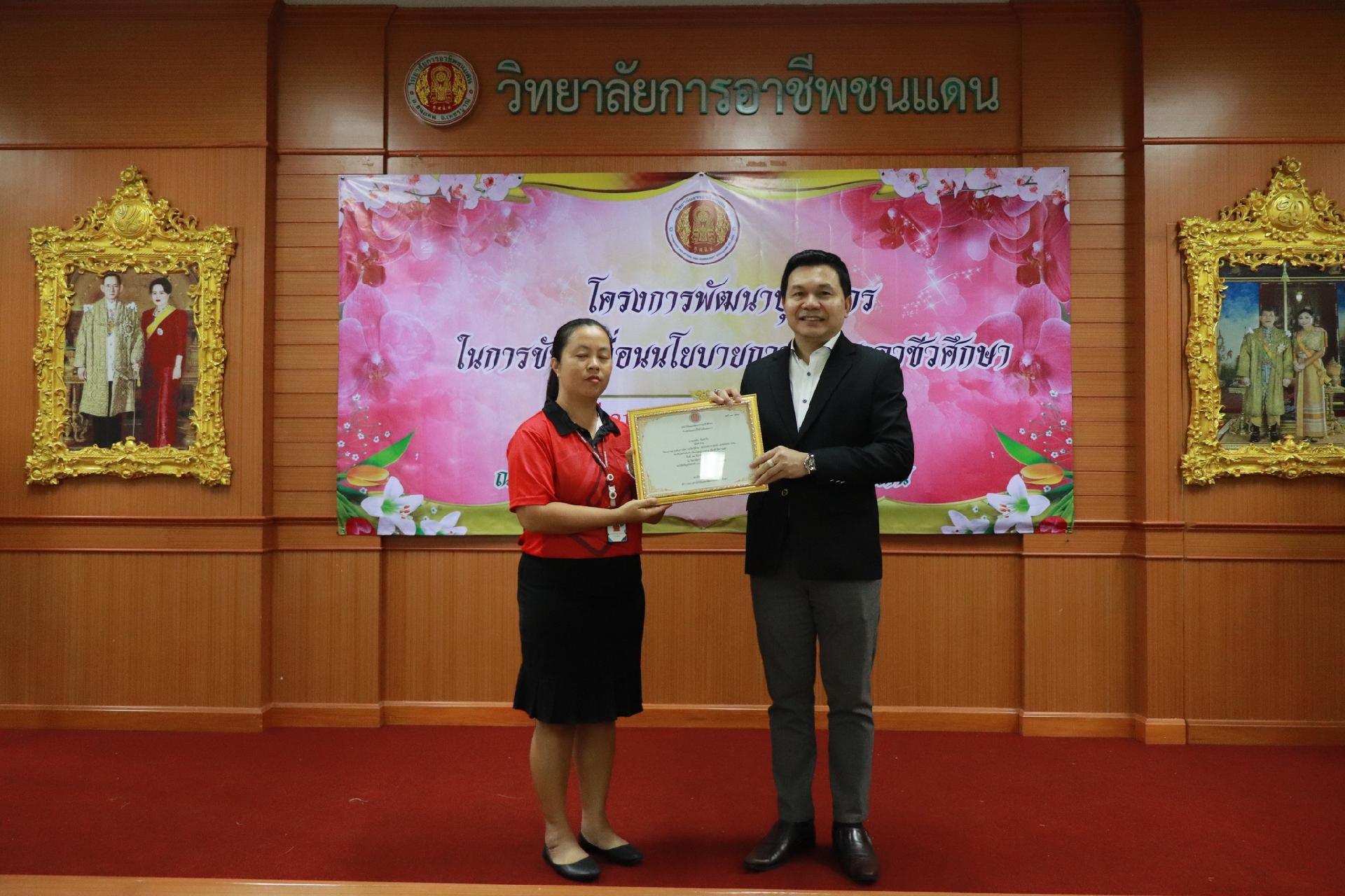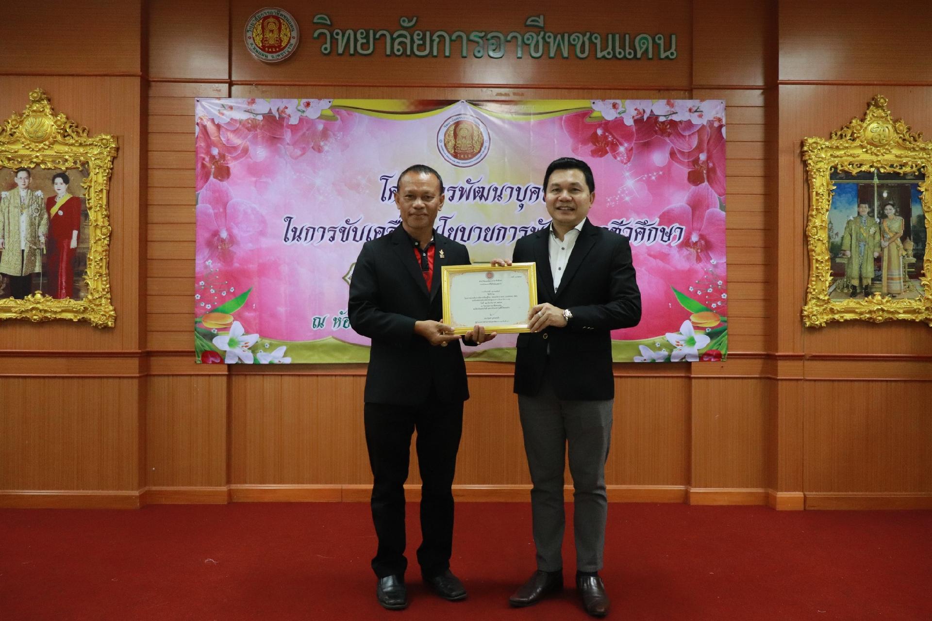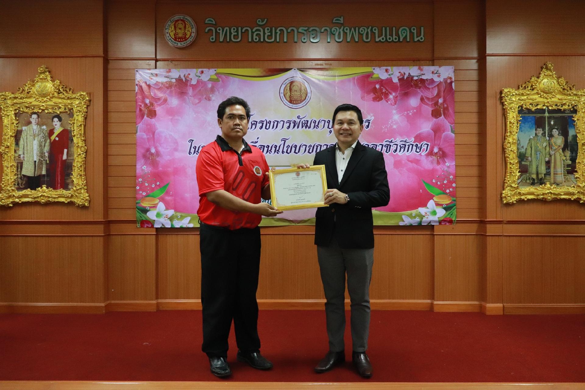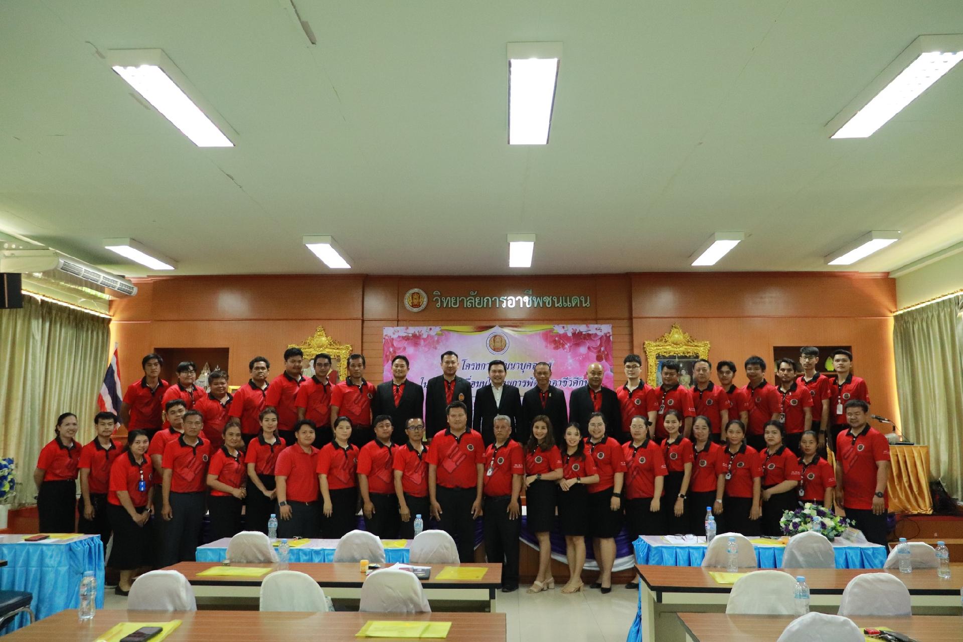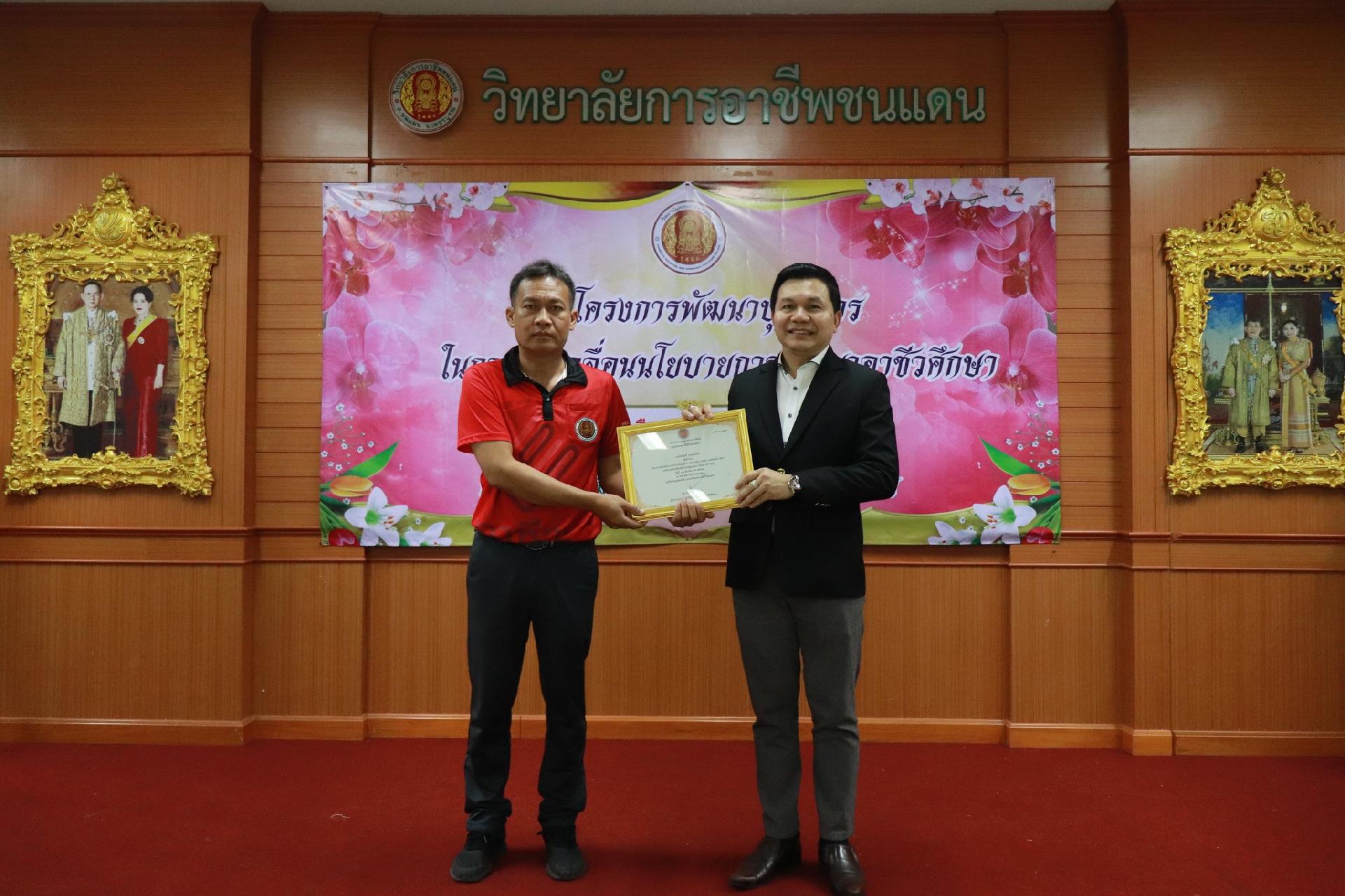 | รายละเอียดกิจกรรม | การอบรมโครงการพัฒนาบุคลากรในการขับเคลื่อนนโยบายการพัฒนาอาชีวศึกษา ยกระดับการจัดการเรียนรู้ด้วย PBL รองรับเทคโนโลยีเปลี่ยนโลกสู่แนวทาง เรียนดี มีความสุข โดย ดร.นิรุตต์ บุตรแสนลี ผู้อำนวยการสำนักวิจัยและสำนักพัฒนาการอาชีวศึกษา และนายสุดชาย บุตรแสนลี ผู้อำนวยการวิทยาลัยเทคนิคนครโคราช |