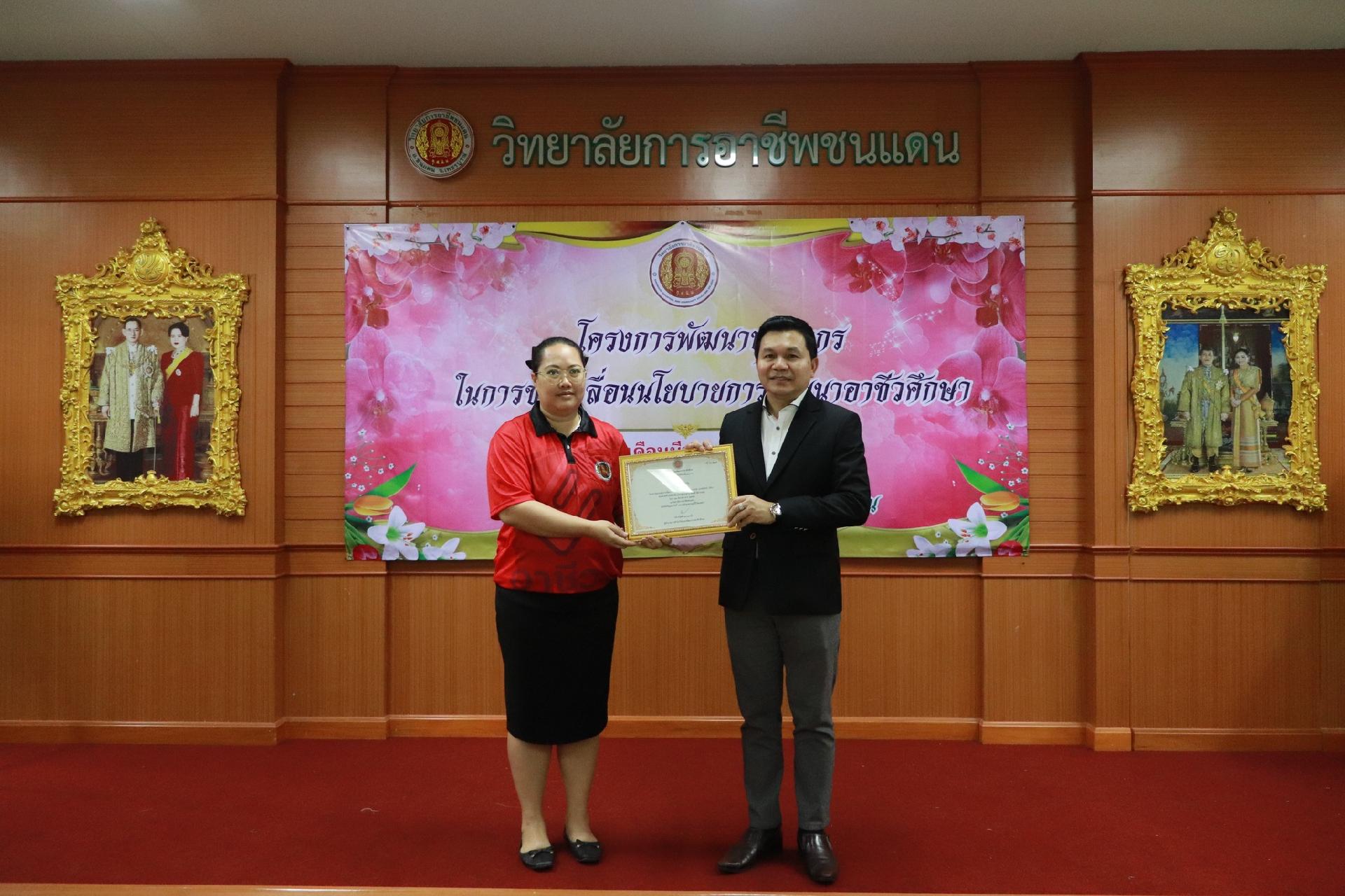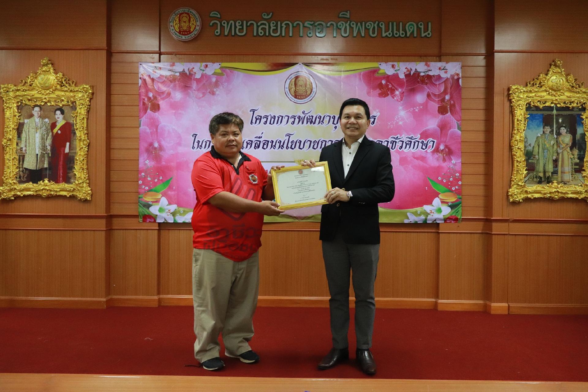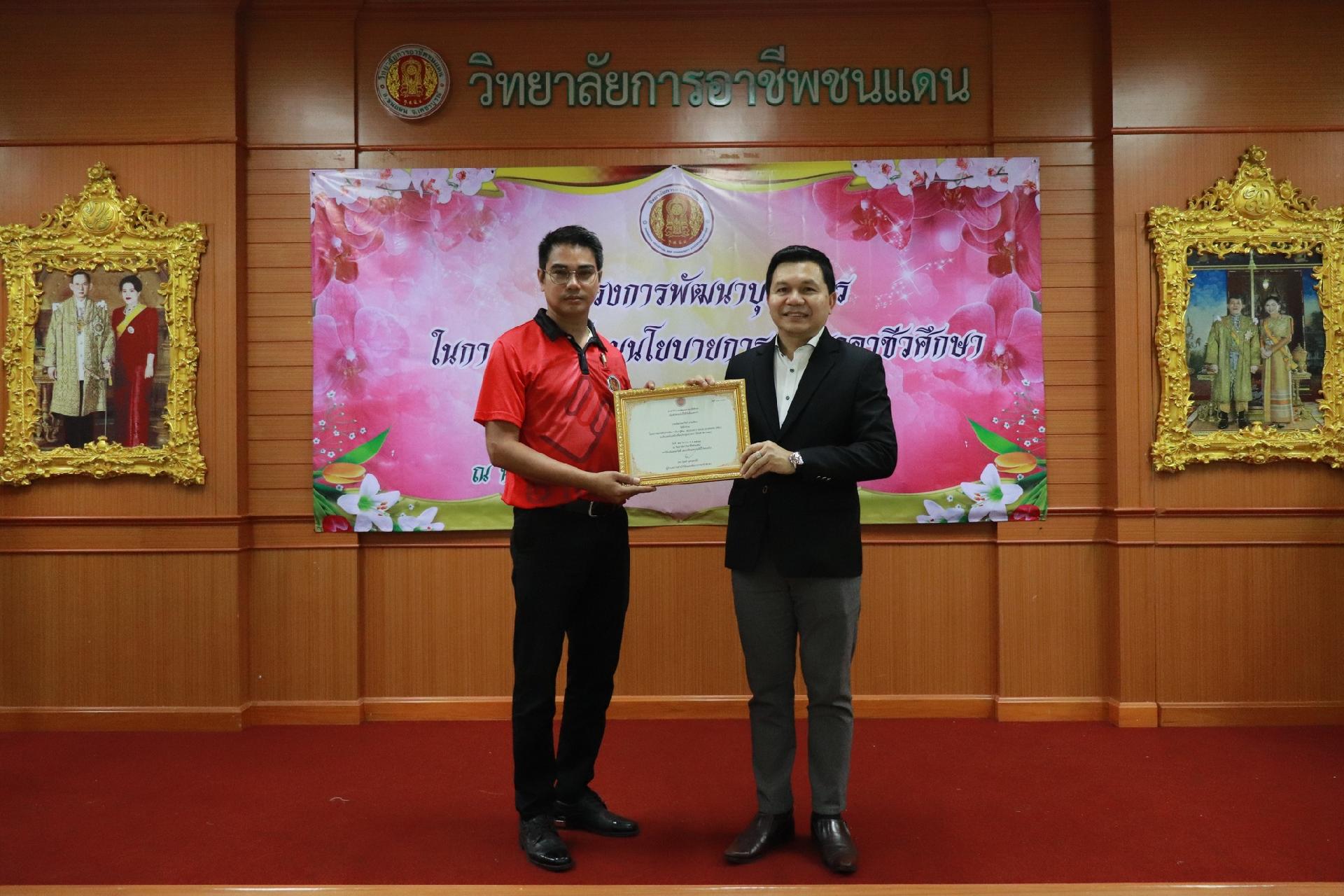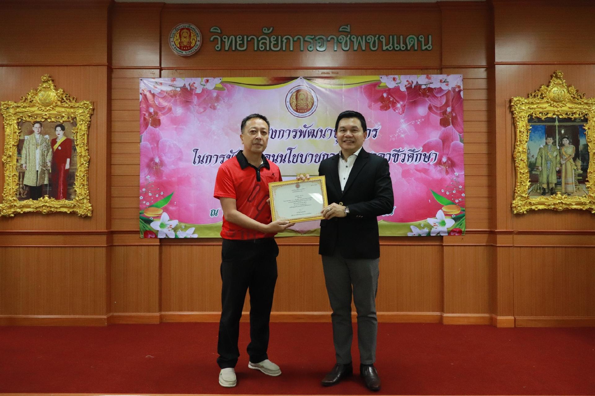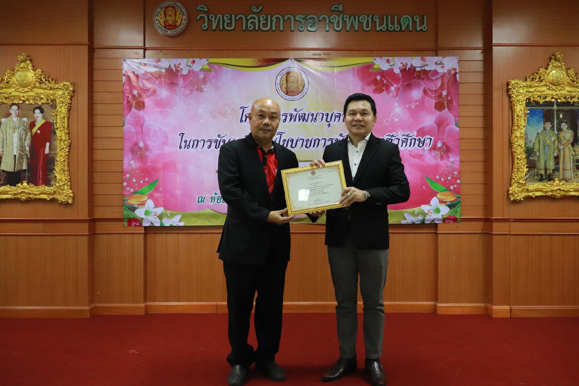 | รายละเอียดกิจกรรม | การอบรมโครงการพัฒนาบุคลากรในการขับเคลื่อนนโยบายการพัฒนาอาชีวศึกษา ยกระดับการจัดการเรียนรู้ด้วย PBL รองรับเทคโนโลยีเปลี่ยนโลกสู่แนวทาง เรียนดี มีความสุข โดย ดร.นิรุตต์ บุตรแสนลี ผู้อำนวยการสำนักวิจัยและสำนักพัฒนาการอาชีวศึกษา และนายสุดชาย บุตรแสนลี ผู้อำนวยการวิทยาลัยเทคนิคนครโคราช |