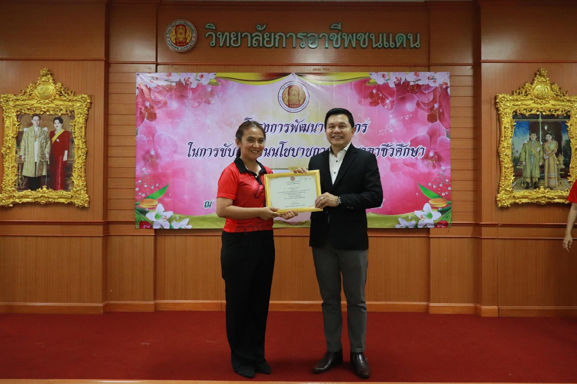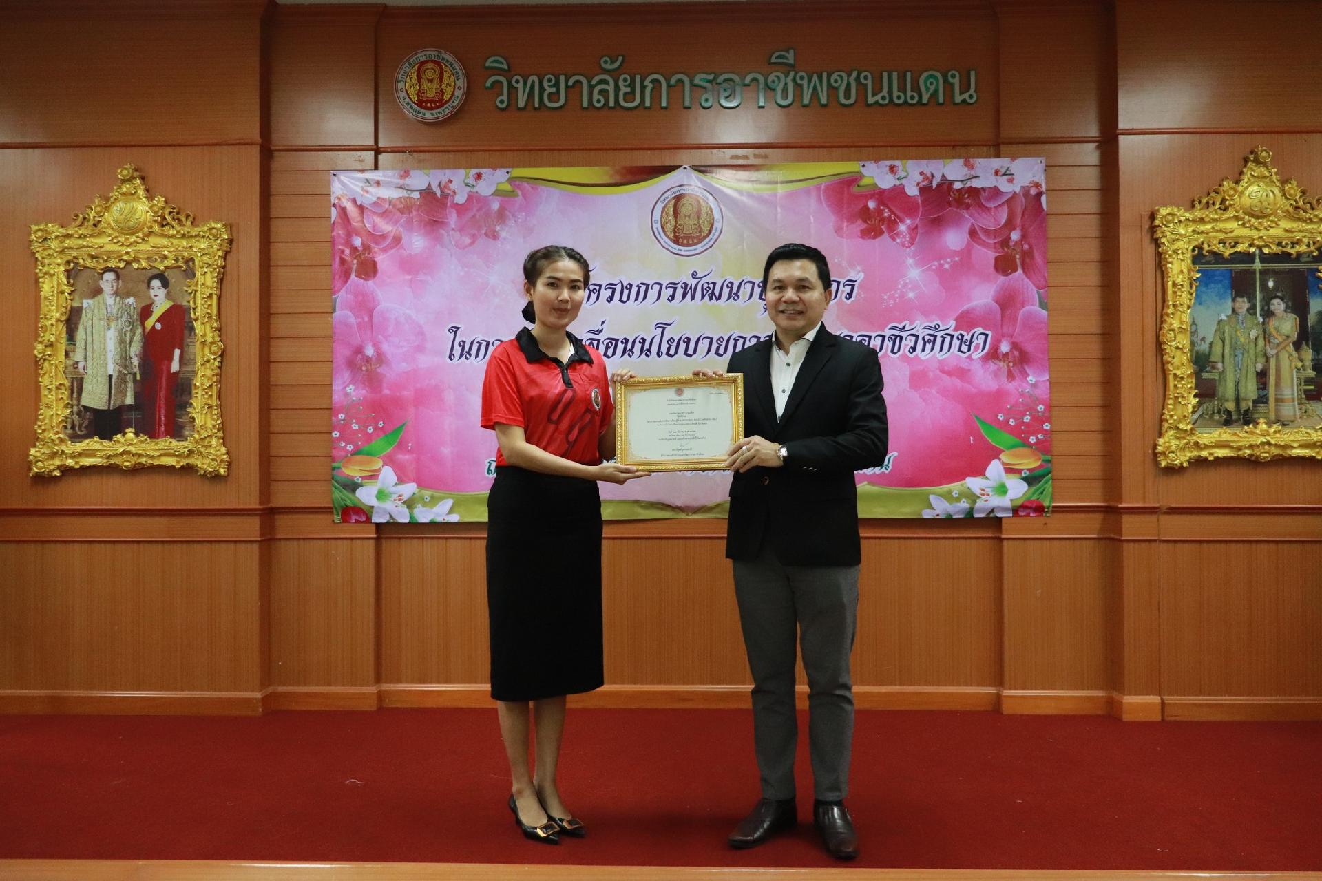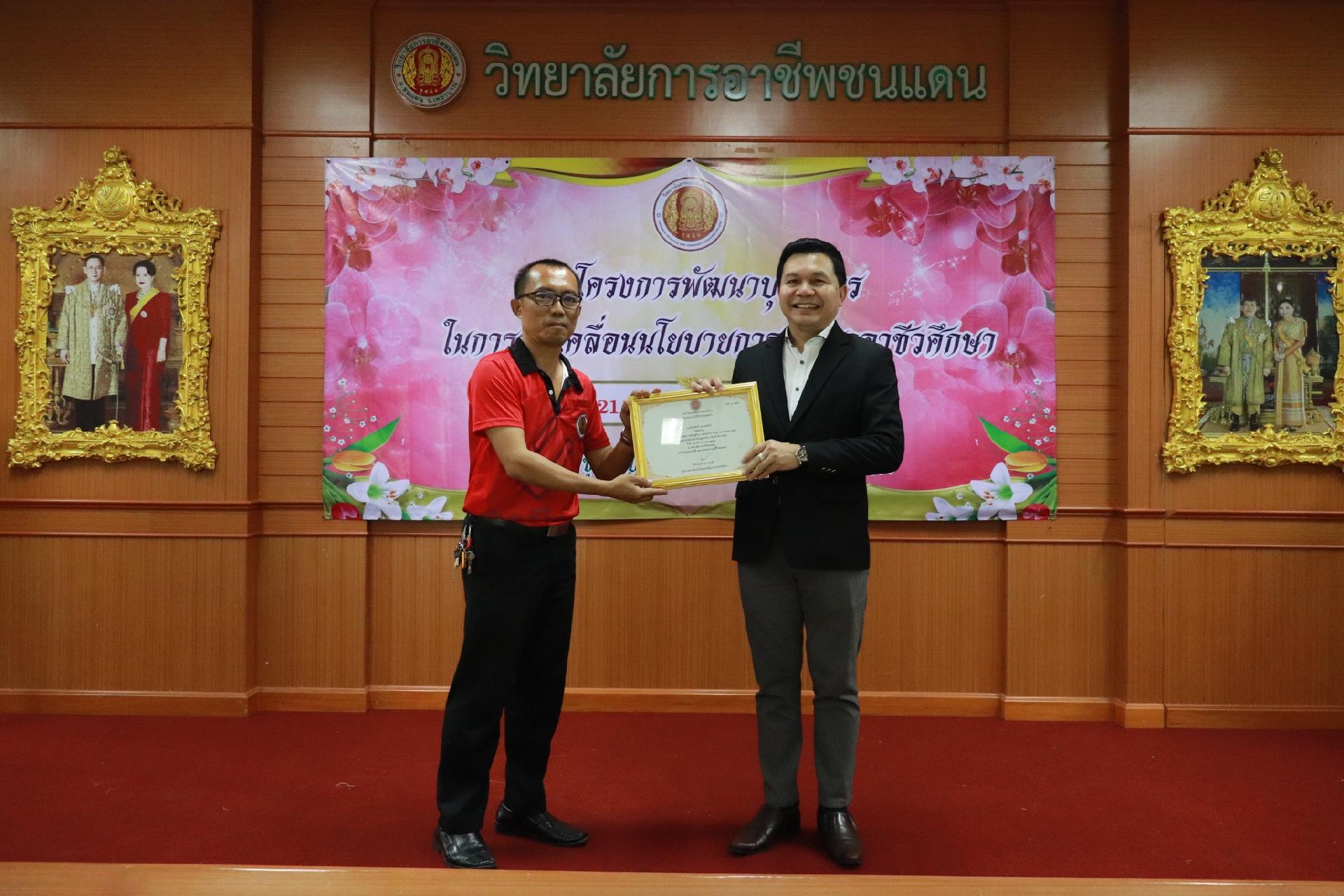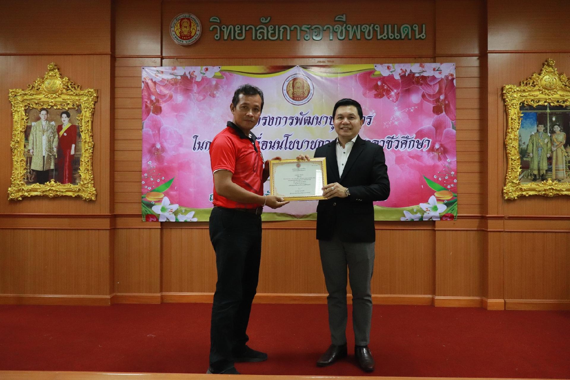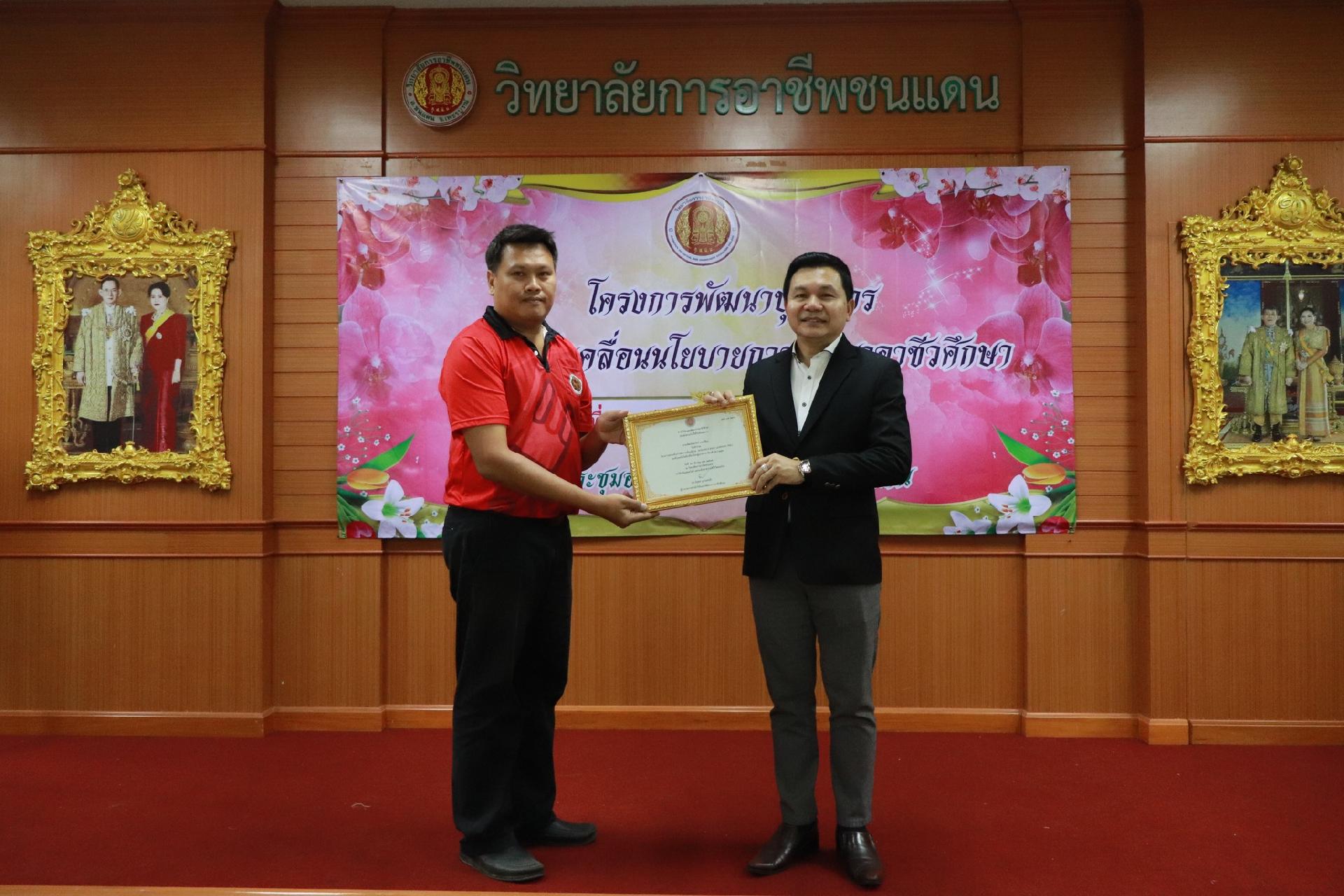 | รายละเอียดกิจกรรม | การอบรมโครงการพัฒนาบุคลากรในการขับเคลื่อนนโยบายการพัฒนาอาชีวศึกษา ยกระดับการจัดการเรียนรู้ด้วย PBL รองรับเทคโนโลยีเปลี่ยนโลกสู่แนวทาง เรียนดี มีความสุข โดย ดร.นิรุตต์ บุตรแสนลี ผู้อำนวยการสำนักวิจัยและสำนักพัฒนาการอาชีวศึกษา และนายสุดชาย บุตรแสนลี ผู้อำนวยการวิทยาลัยเทคนิคนครโคราช |