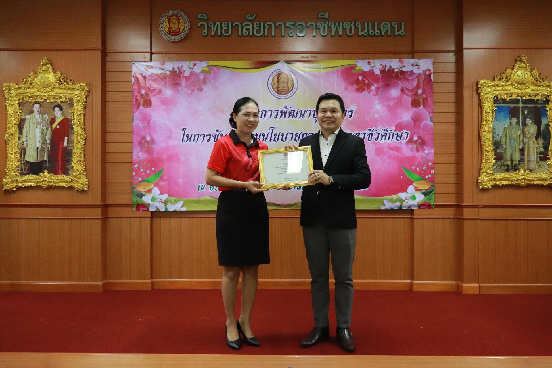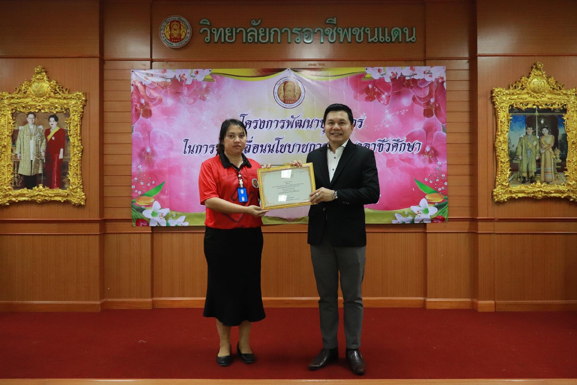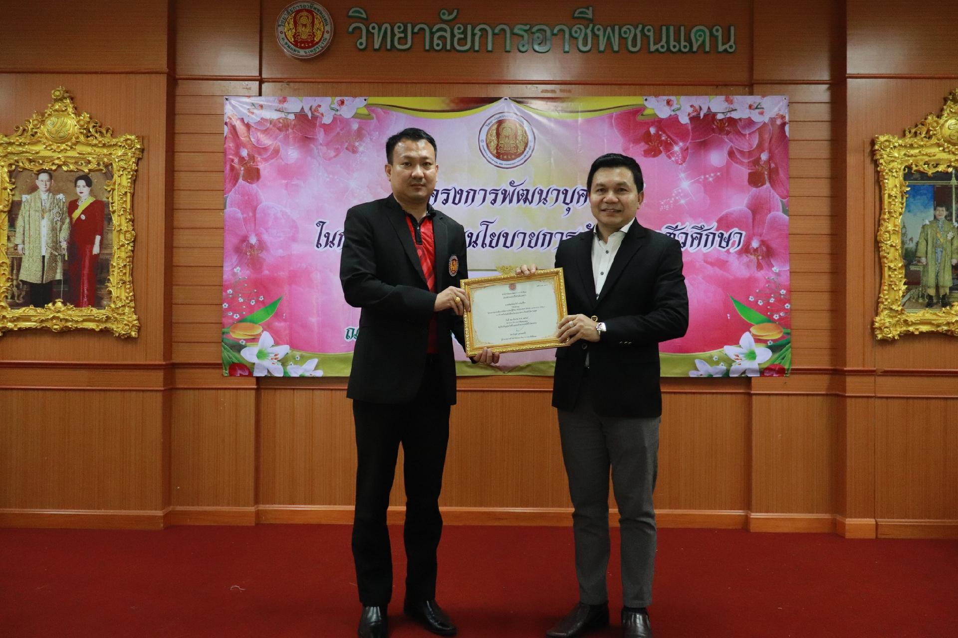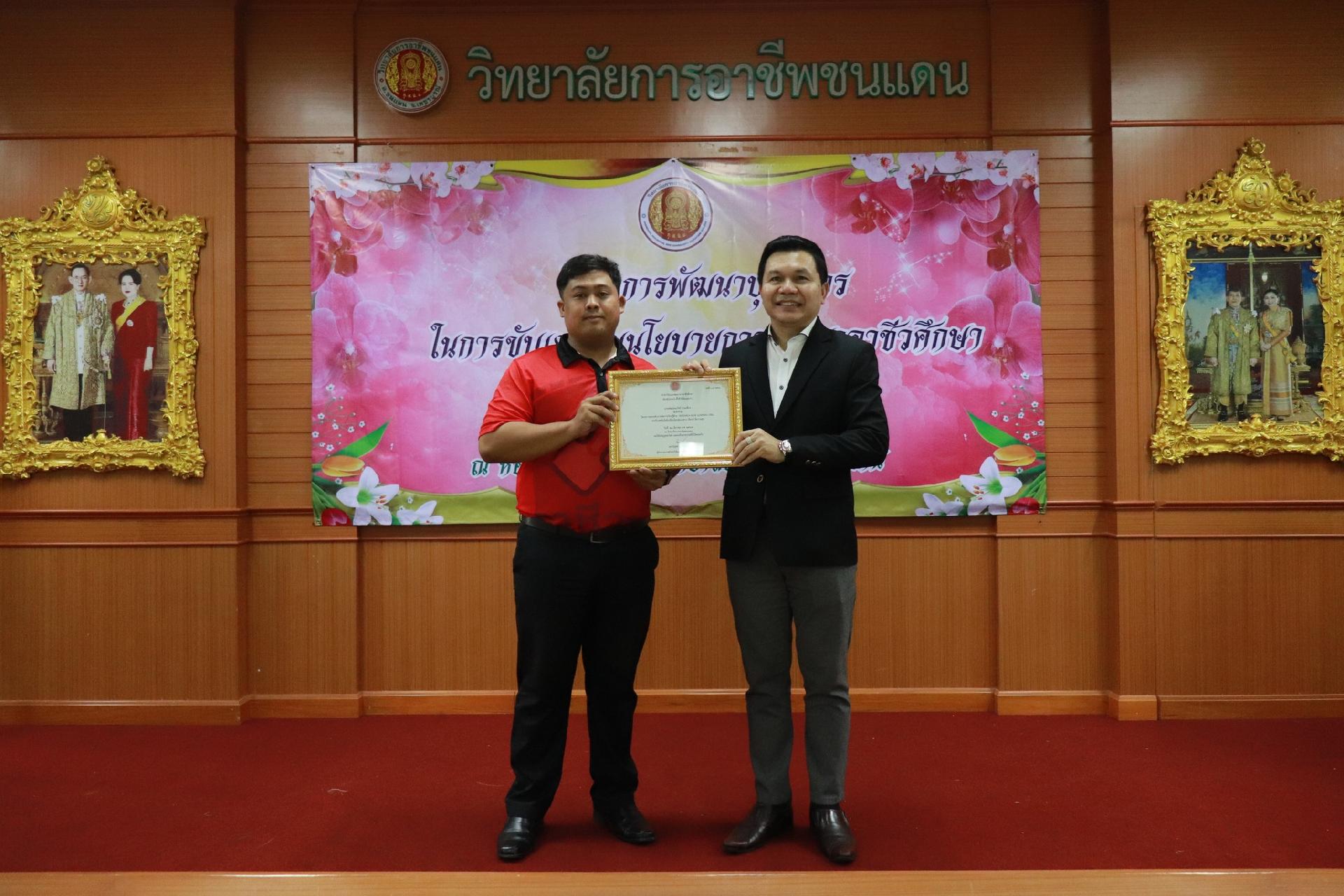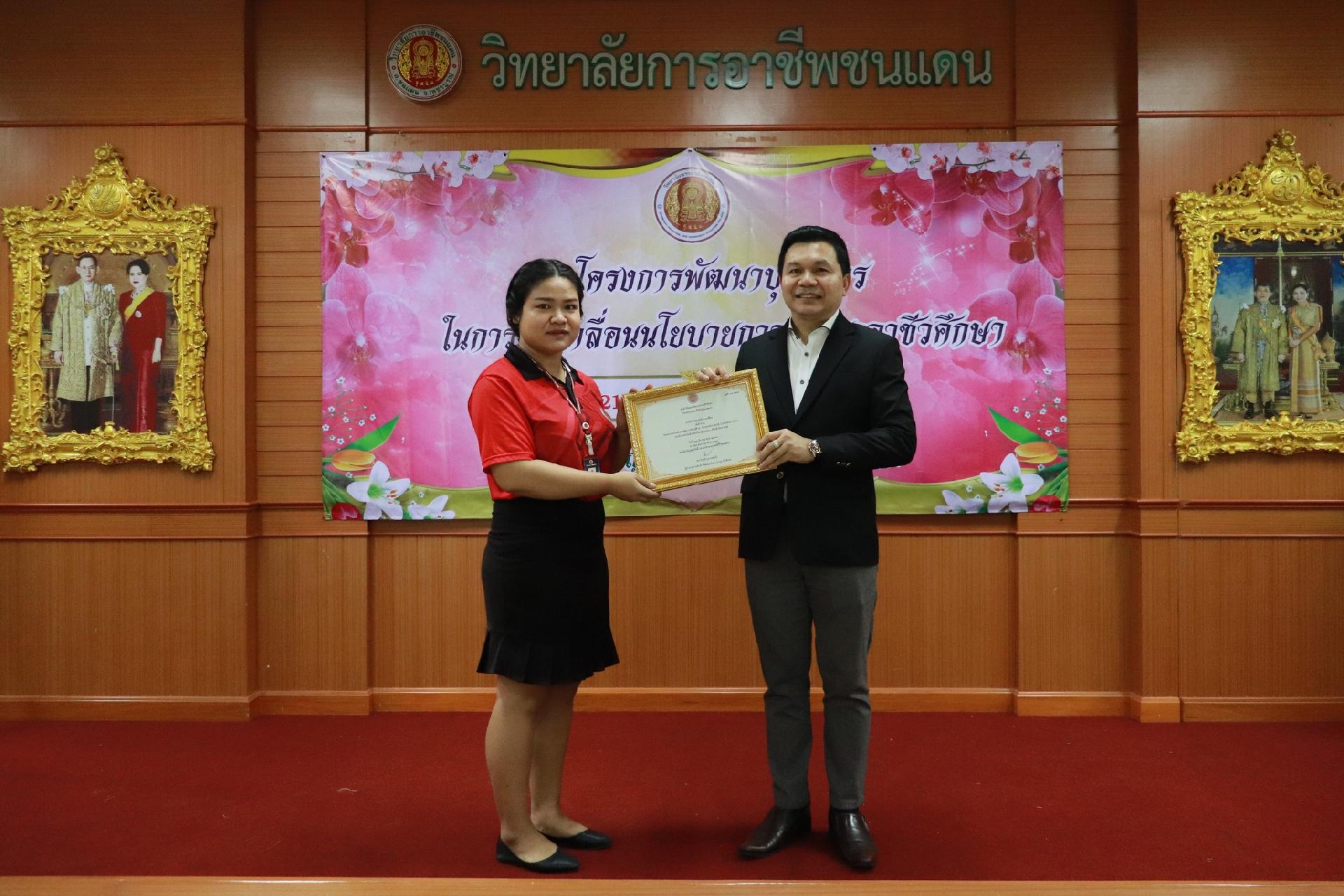 | รายละเอียดกิจกรรม | การอบรมโครงการพัฒนาบุคลากรในการขับเคลื่อนนโยบายการพัฒนาอาชีวศึกษา ยกระดับการจัดการเรียนรู้ด้วย PBL รองรับเทคโนโลยีเปลี่ยนโลกสู่แนวทาง เรียนดี มีความสุข โดย ดร.นิรุตต์ บุตรแสนลี ผู้อำนวยการสำนักวิจัยและสำนักพัฒนาการอาชีวศึกษา และนายสุดชาย บุตรแสนลี ผู้อำนวยการวิทยาลัยเทคนิคนครโคราช |