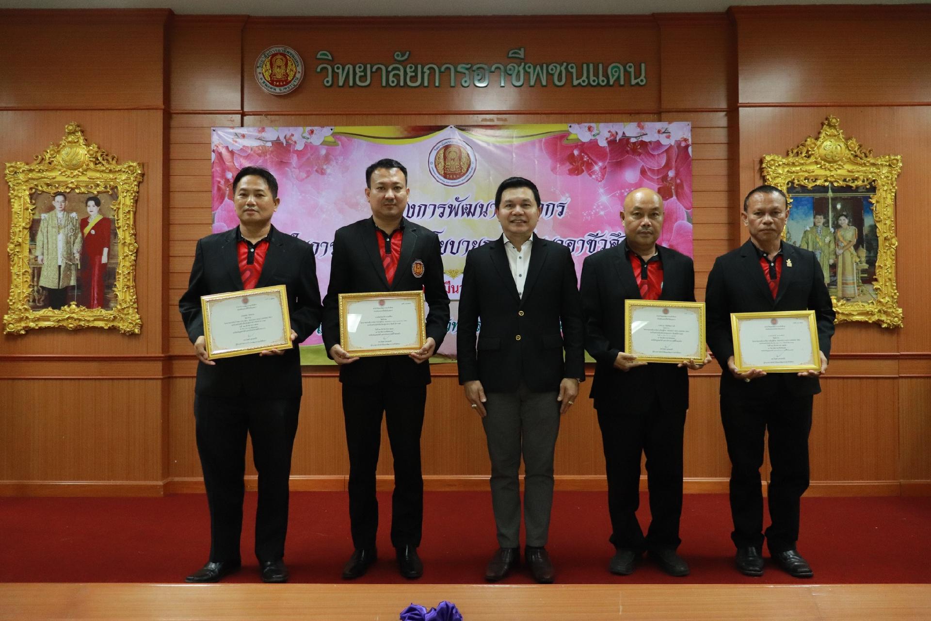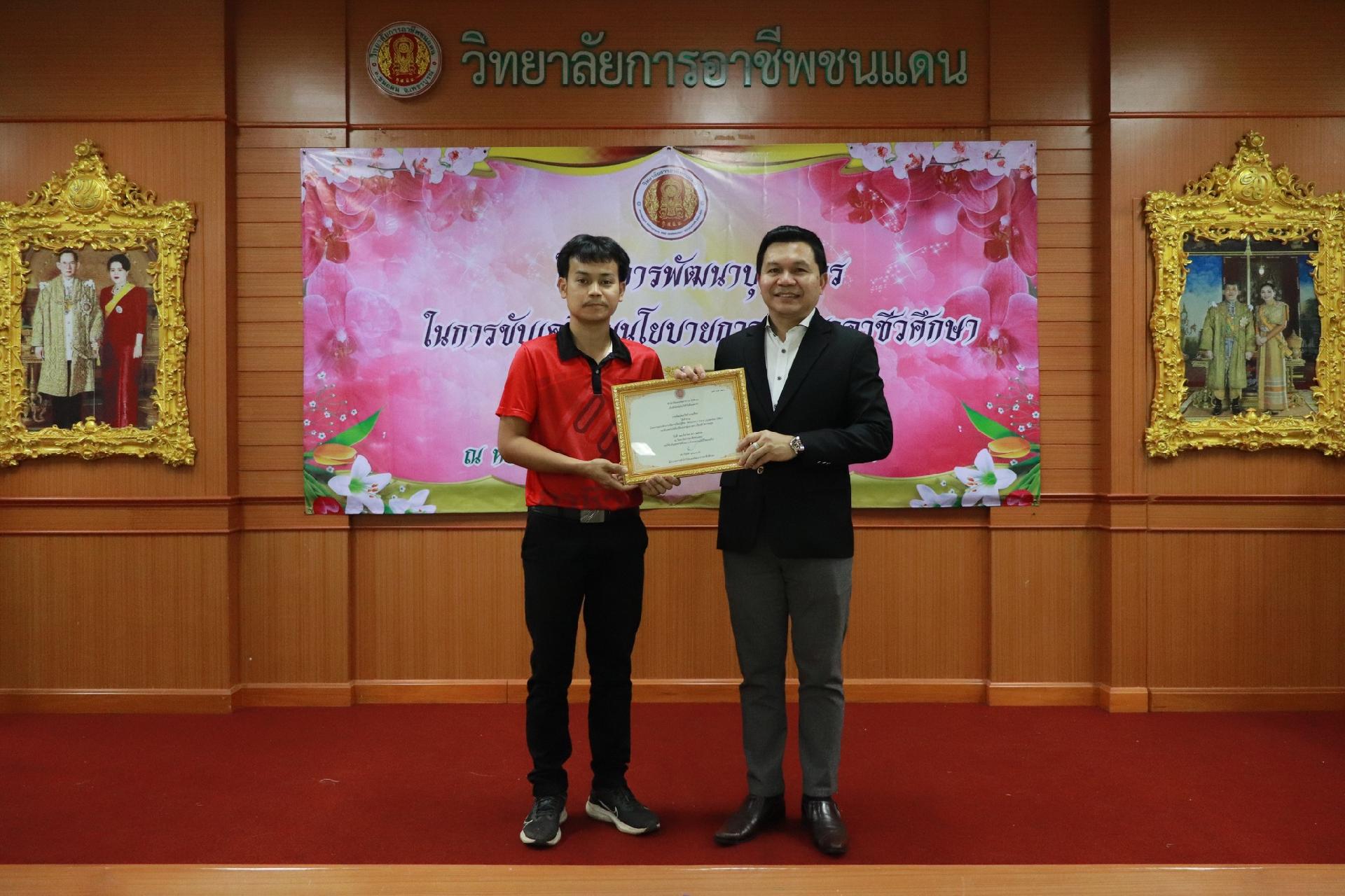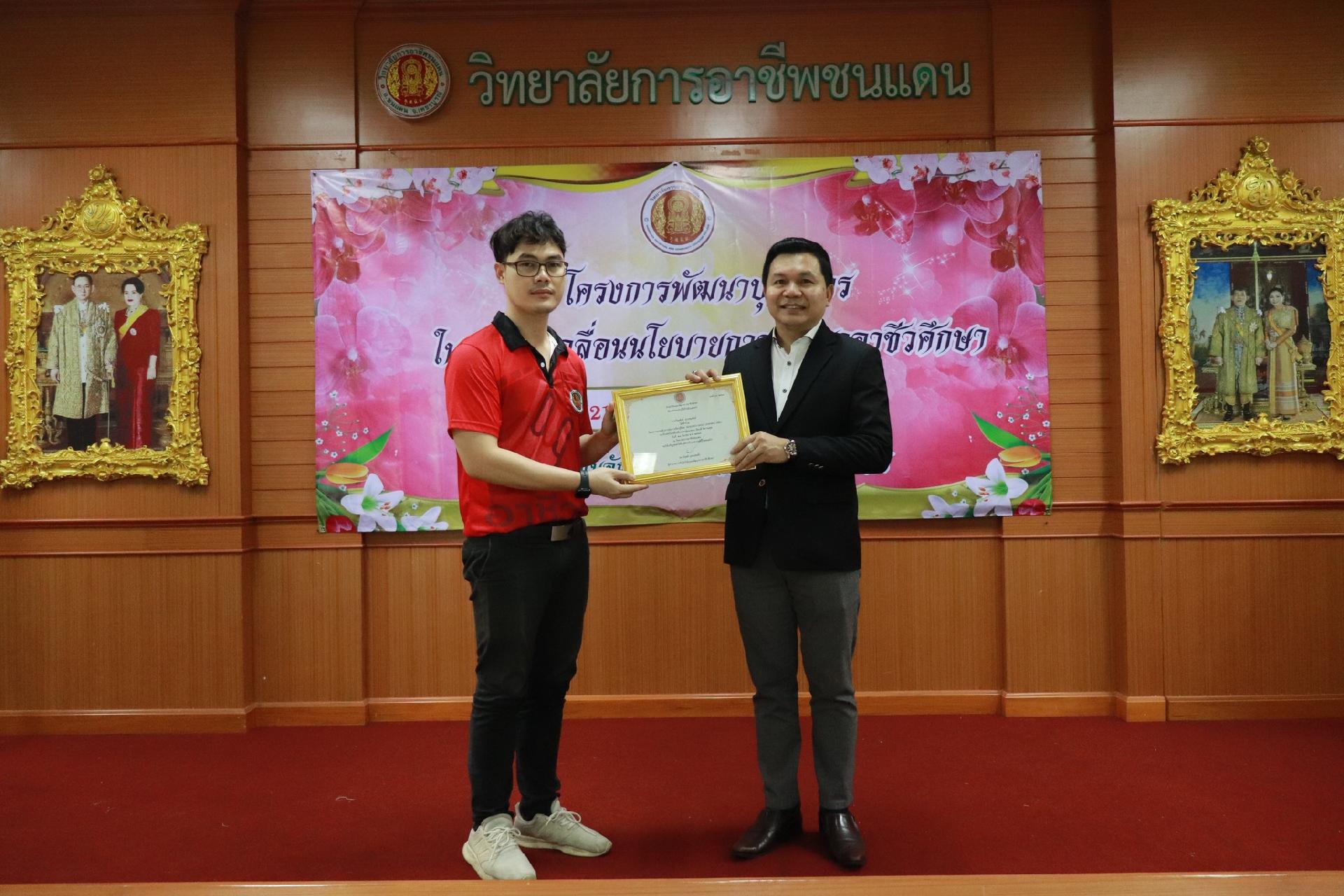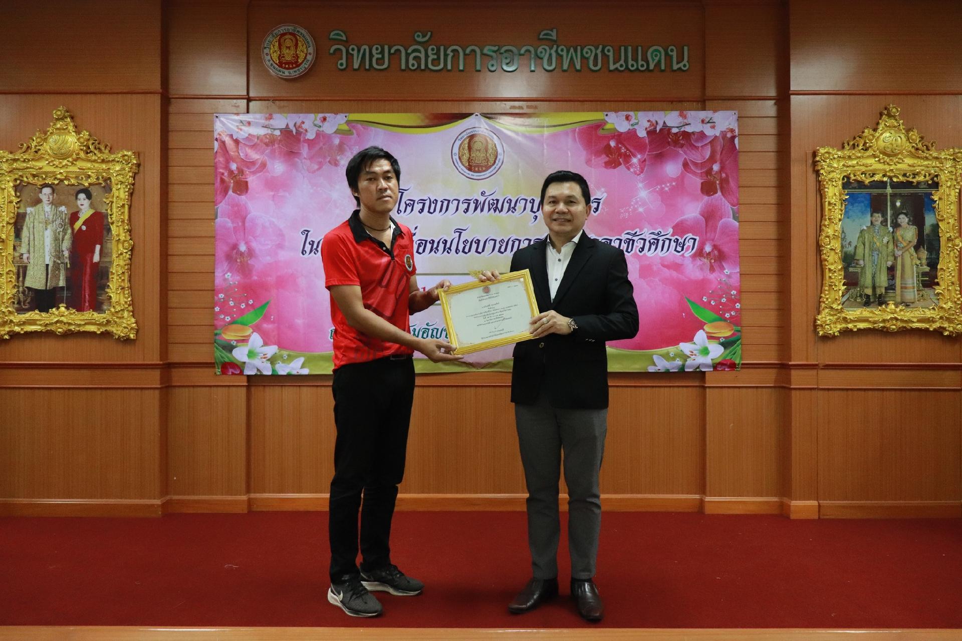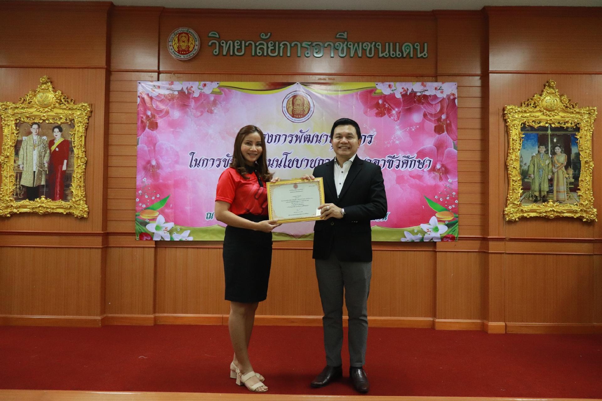 | รายละเอียดกิจกรรม | การอบรมโครงการพัฒนาบุคลากรในการขับเคลื่อนนโยบายการพัฒนาอาชีวศึกษา ยกระดับการจัดการเรียนรู้ด้วย PBL รองรับเทคโนโลยีเปลี่ยนโลกสู่แนวทาง เรียนดี มีความสุข โดย ดร.นิรุตต์ บุตรแสนลี ผู้อำนวยการสำนักวิจัยและสำนักพัฒนาการอาชีวศึกษา และนายสุดชาย บุตรแสนลี ผู้อำนวยการวิทยาลัยเทคนิคนครโคราช |