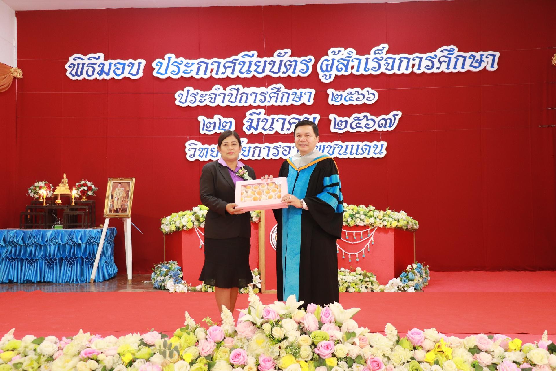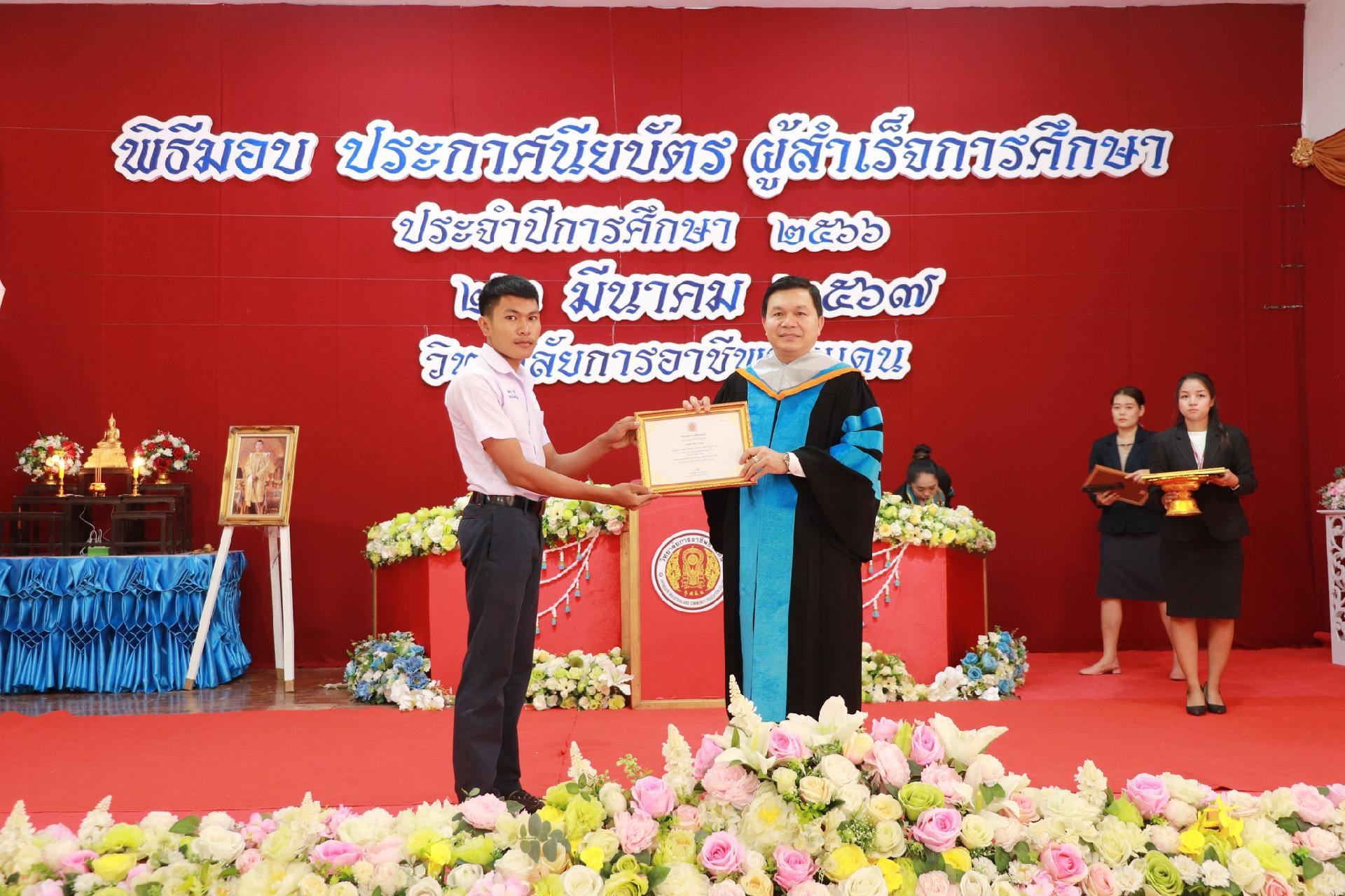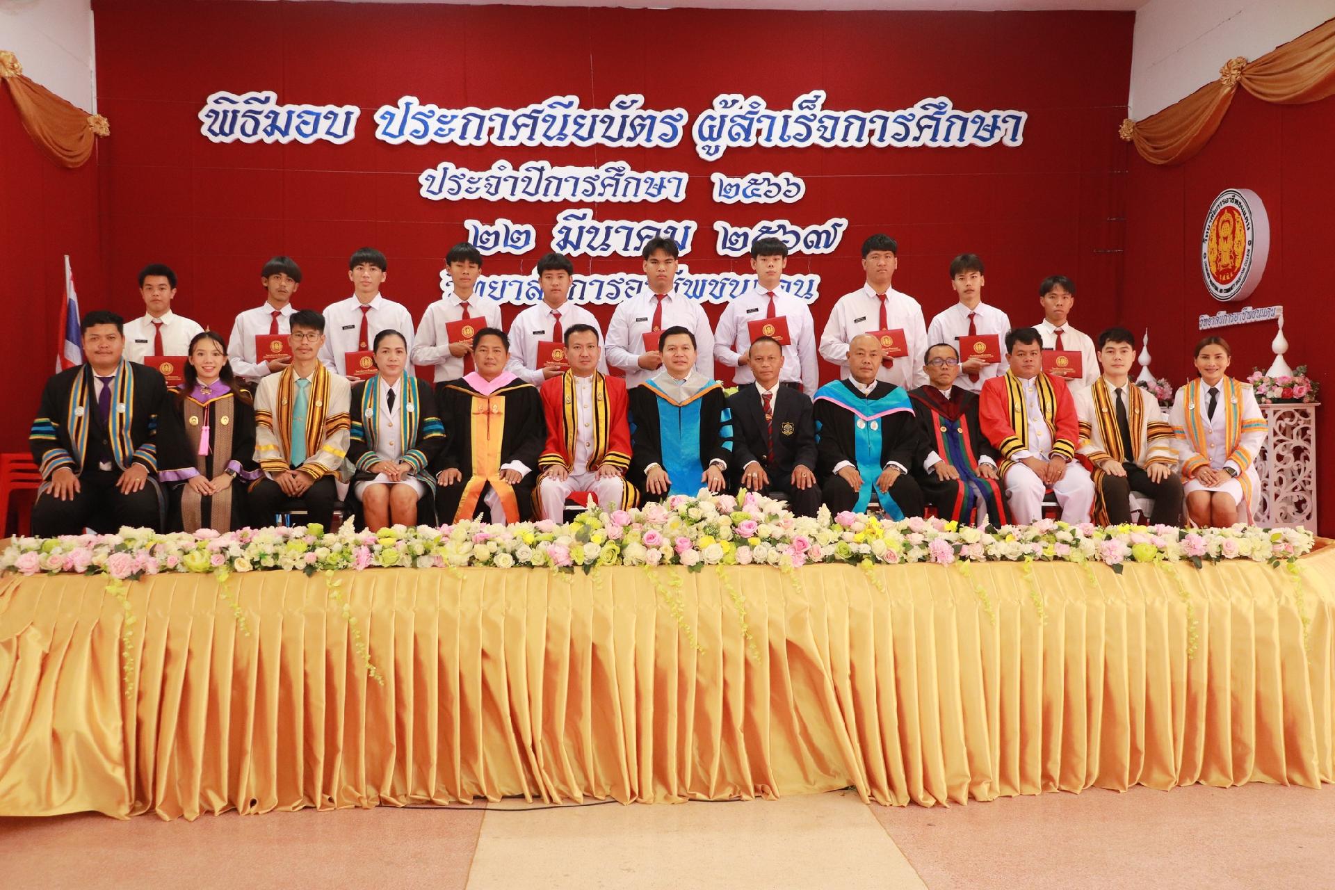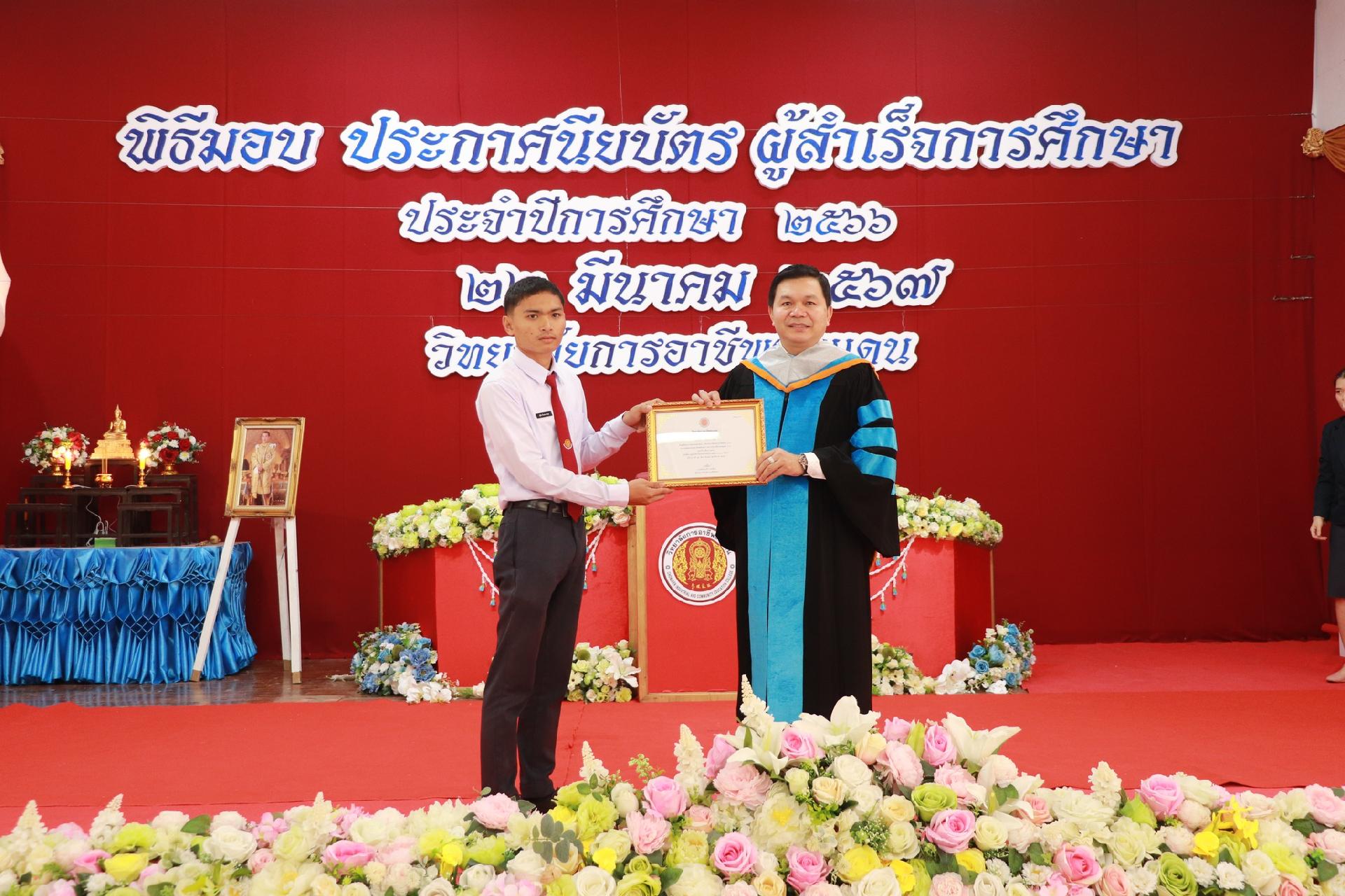 | รายละเอียดกิจกรรม | พิธีมอบเกียรติบัตร ผู้สำเร็จการศึกษา ประจำปีการศึกษา 2566 ให้กับนักเรียน นักศึกษา วิทยาลัยการอาชีพชนแดน โดย ดร.นิรุตต์ บุตรแสนลี ผู้อำนวยการสำนักวิจัยและพัฒนาการอาชีวศึกษา ให้เกียรติมาเป็นประธาน |