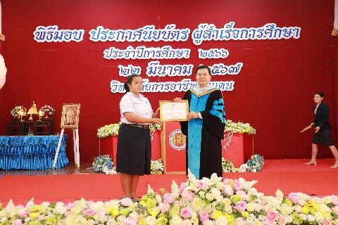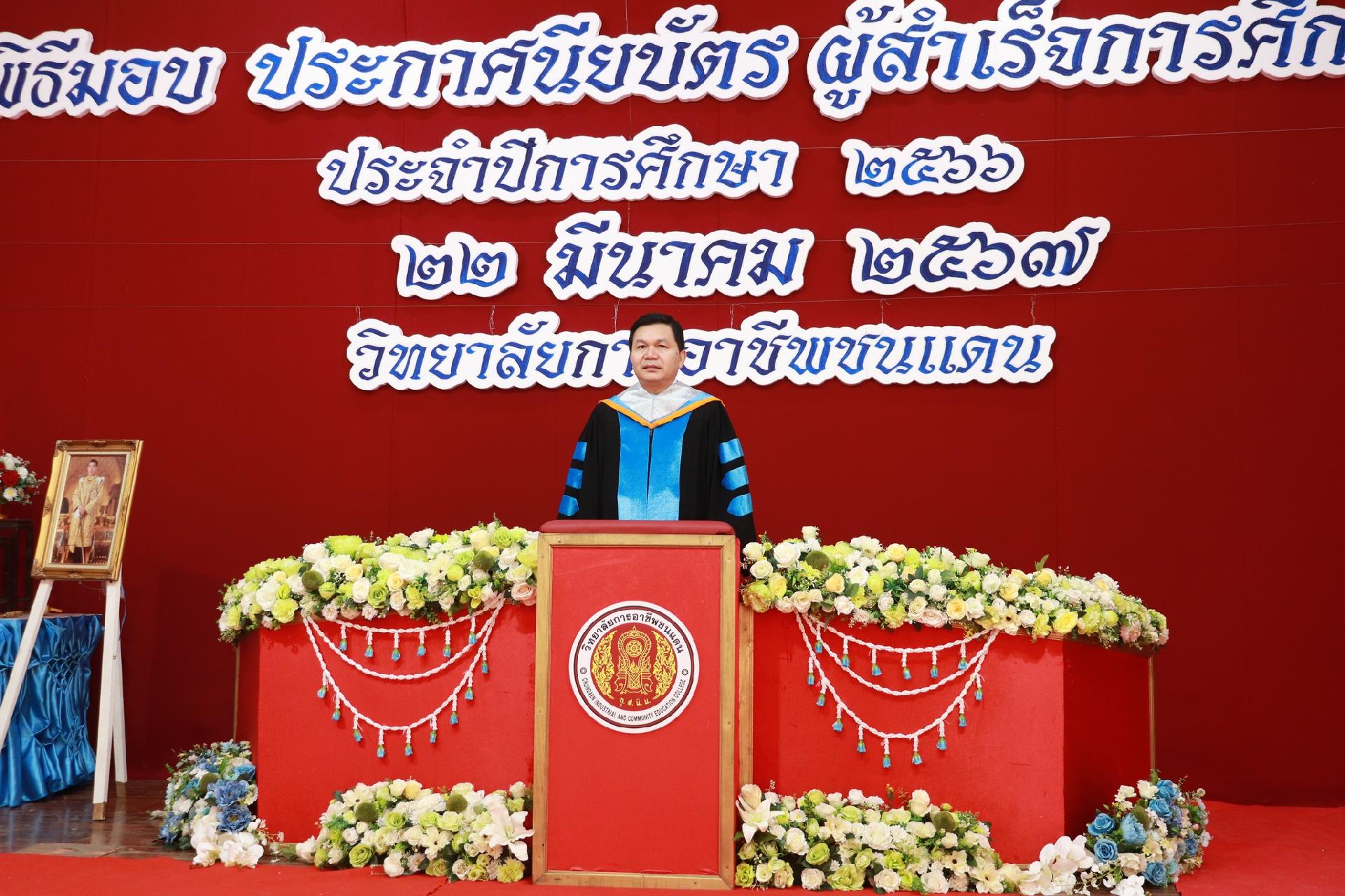 | หัวข้อกิจกรรม | พิธีมอบเกียรติบัตร ผู้สำเร็จการศึกษา ประจำปีการศึกษา 2566 ให้กับนักเรียน นักศึกษา วิทยาลัยการอาชีพชนแดน |