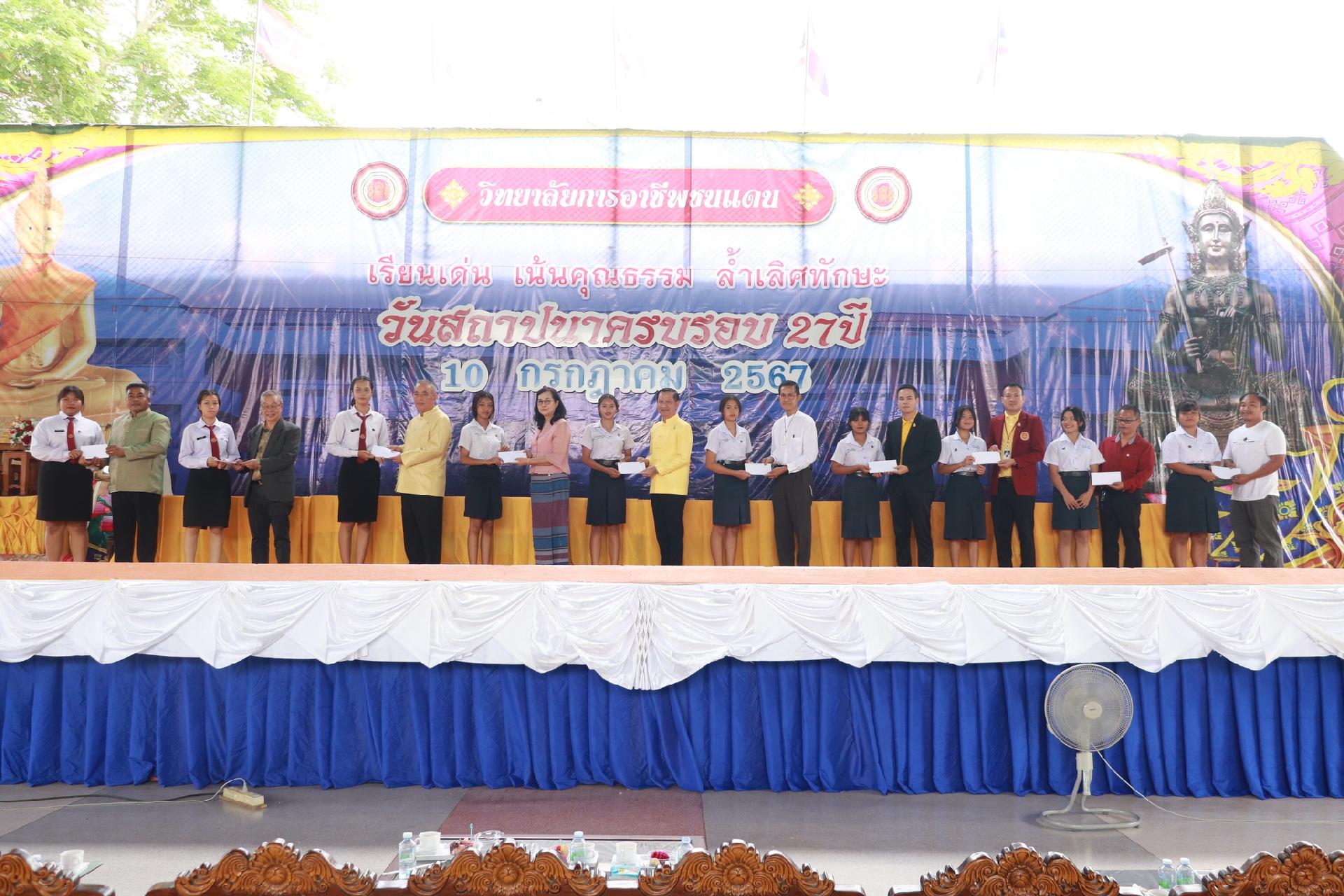 | หัวข้อกิจกรรม | ทำบุญเนื่องในวันสถาปนาวิทยาลัยฯ ครบรอบ 27 ปี วิทยาลัยการอาชีพชนแดน ประจำปี 2567 |