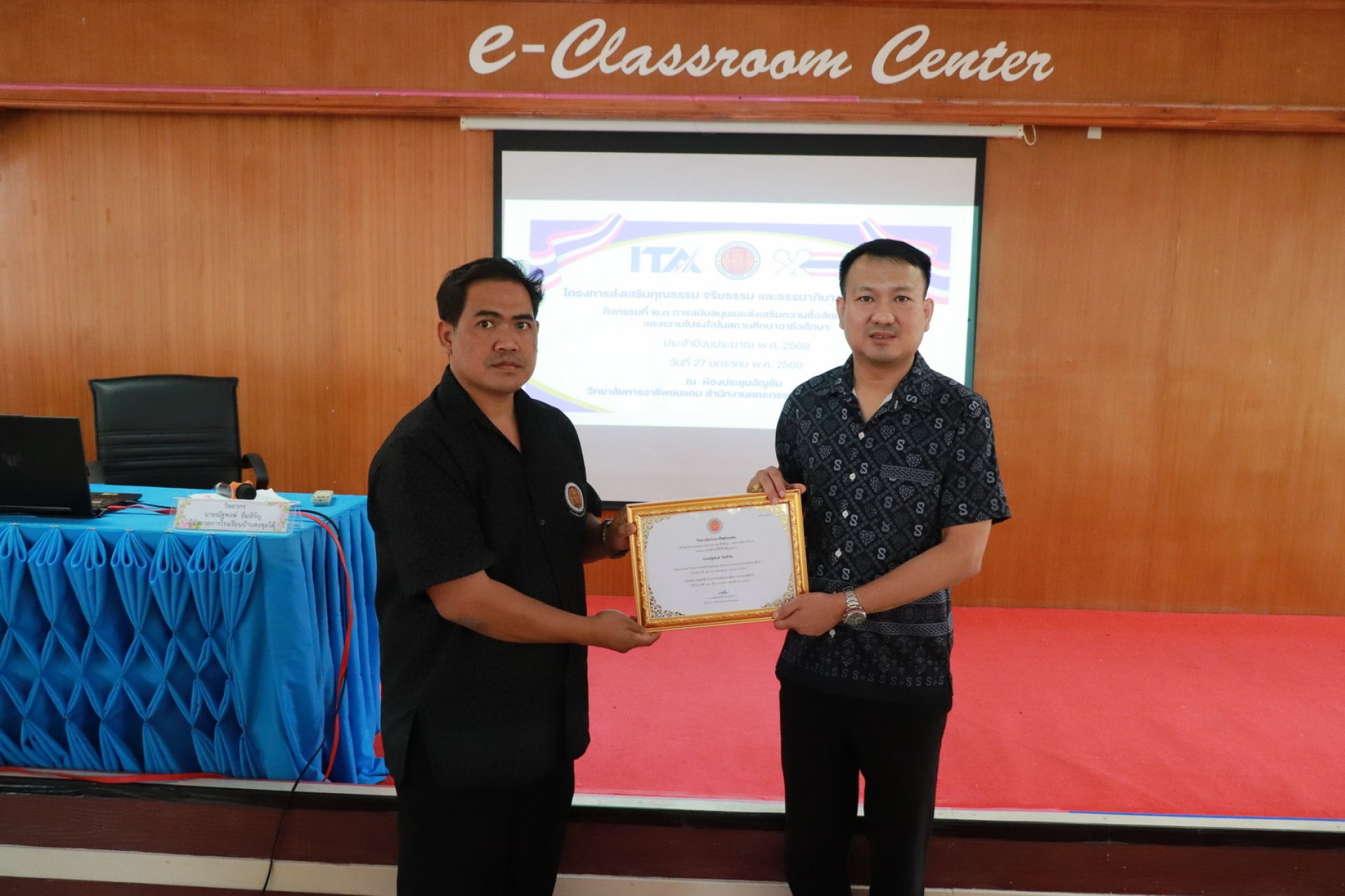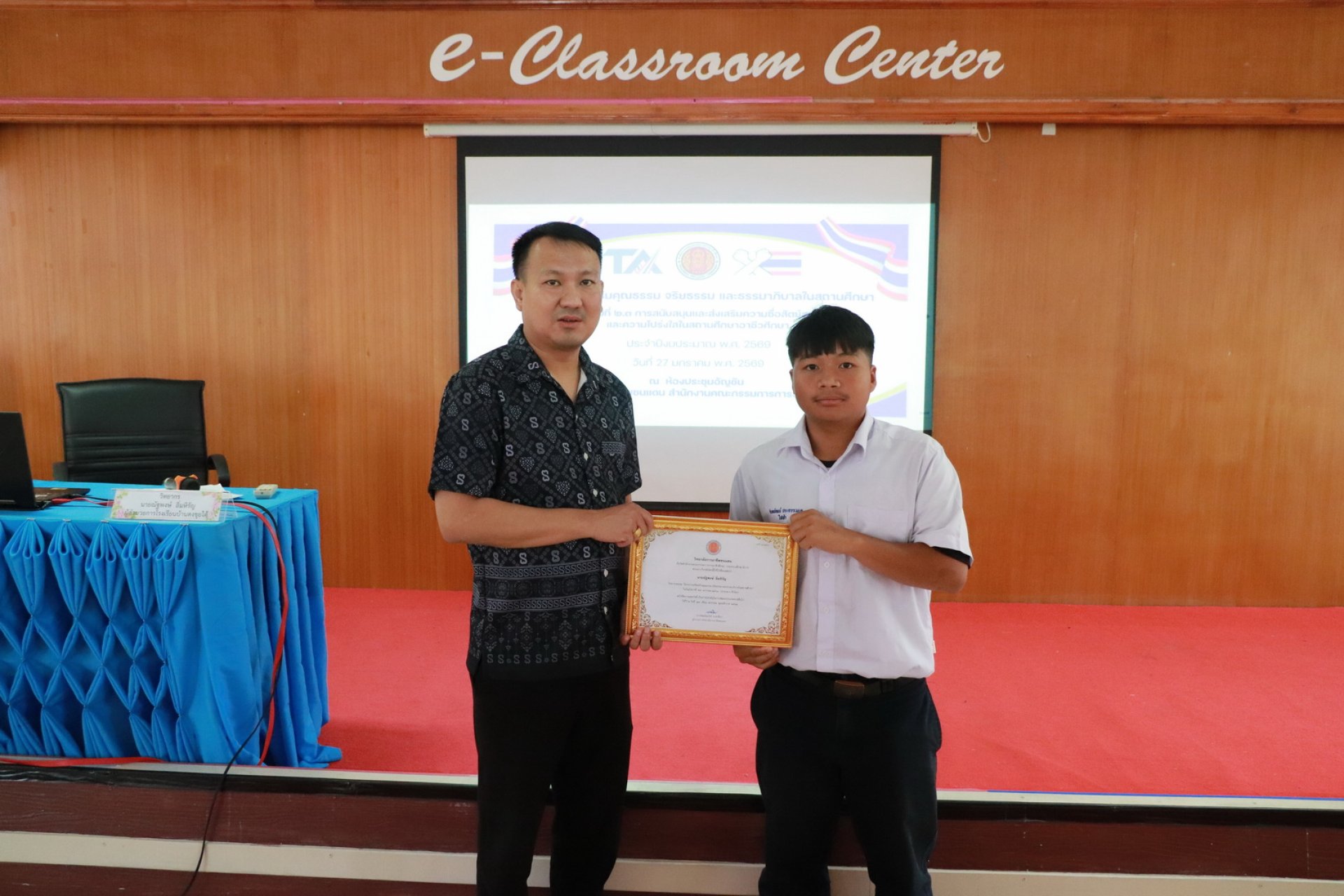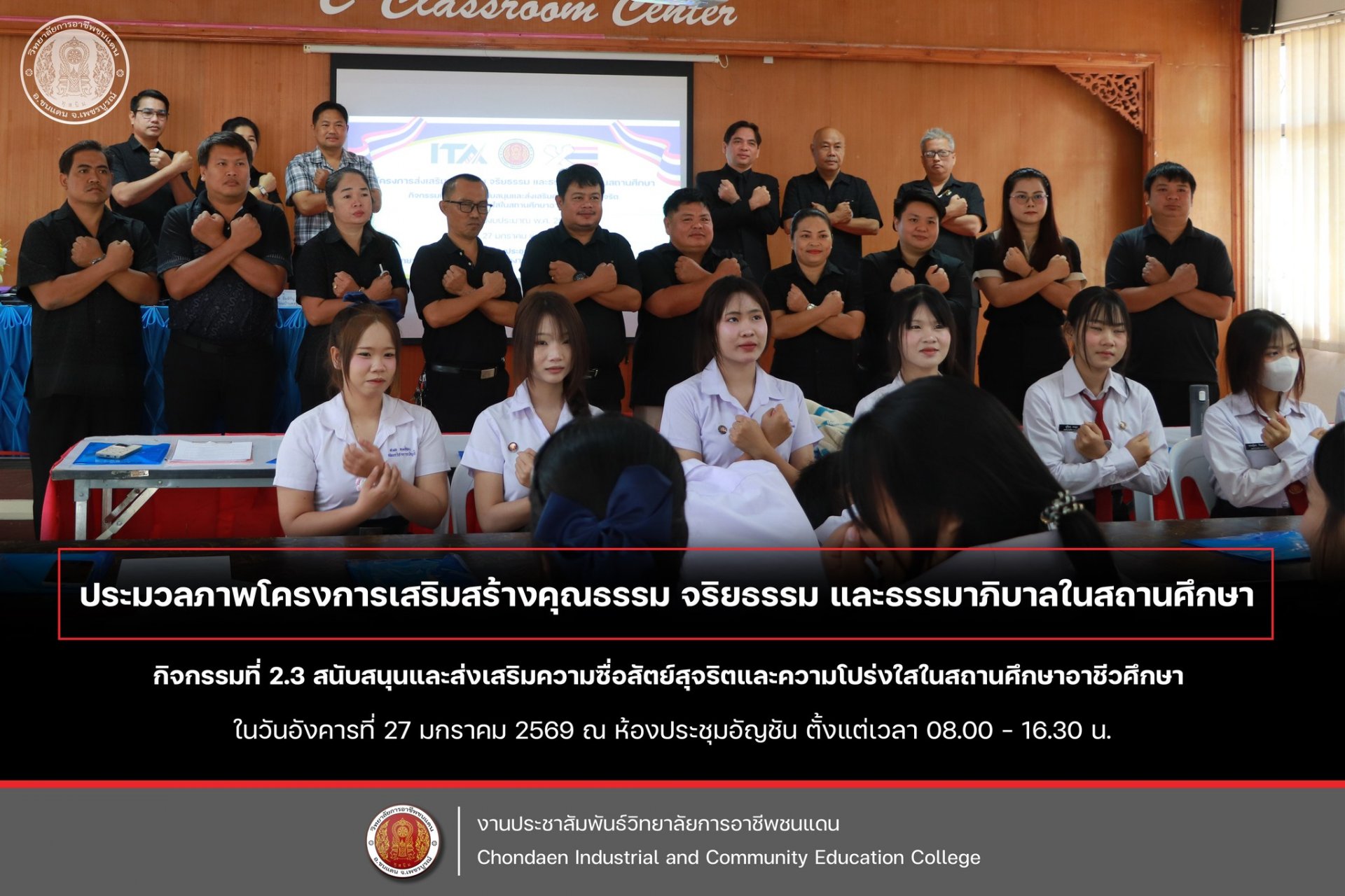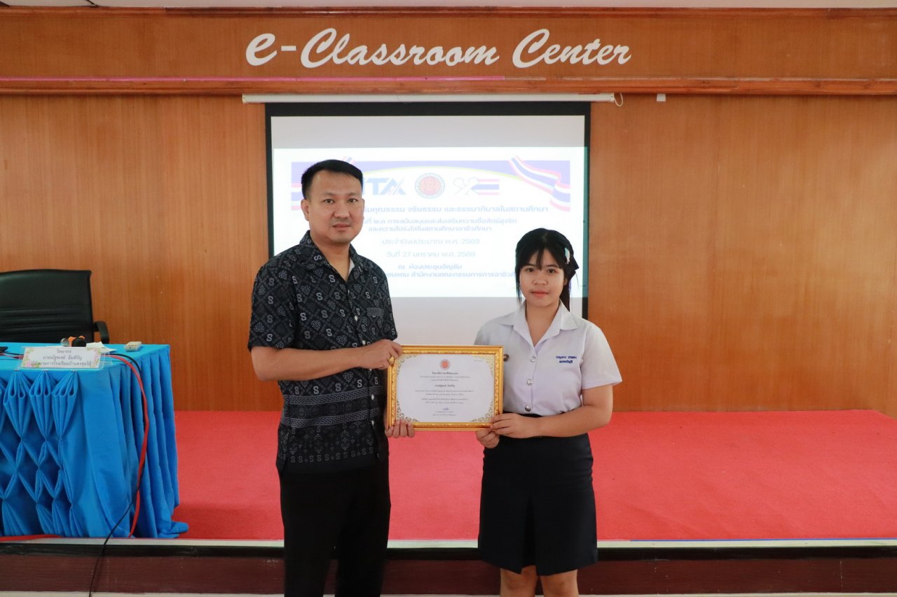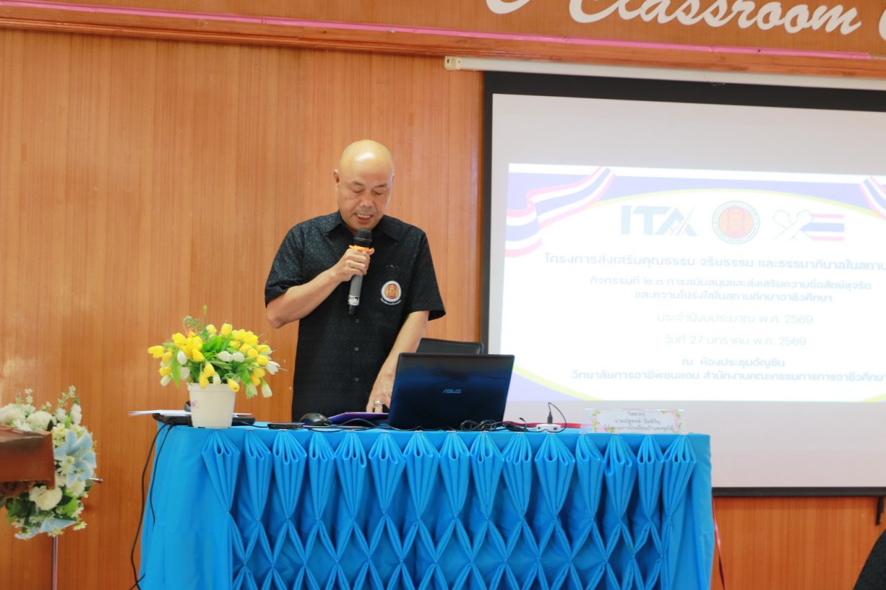 | รายละเอียดกิจกรรม | โครงการเสริมสร้างคุณธรรม จริยธรรม และธรรมาภิบาลในสถานศึกษา ในวันอังคารที่ 27 มกราคม 2569 ณ ห้องประชุมอัญชัน |