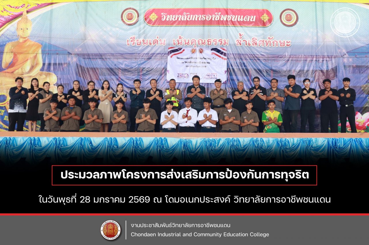 | รายละเอียดกิจกรรม | โครงการส่งเสริมการป้องกันการทุจริต ในวันพุธที่ 28 มกราคม 2569 ณ อาคารเอนกประสงค์(โดม) วิทยาลัยการอาชีพชนแดน |