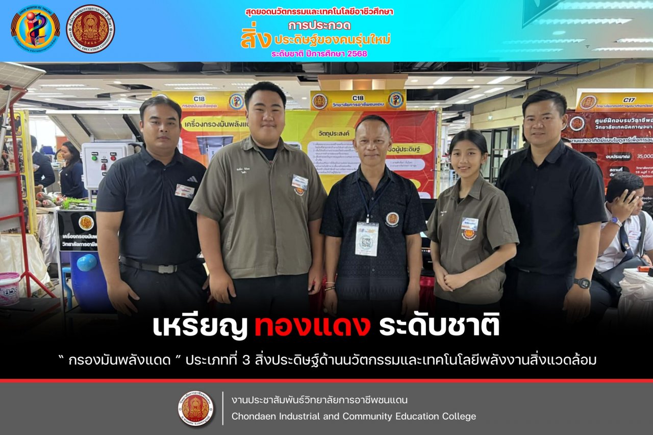 | หัวข้อกิจกรรม | ผลการแข่งขัน การประกวดสิ่งประดิษฐ์ของคนรุ่นใหม่ ระดับชาติ ประจำปีการศึกษา 2568 ในวันที่ 31 มกราคม 2569 ประเภทที่ 3 กรองน้ำมันพลังแดด |