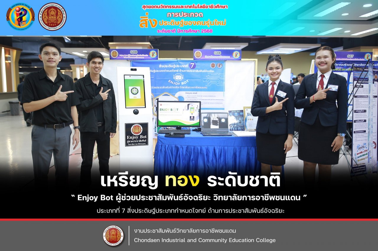 | หัวข้อกิจกรรม | ผลการแข่งขัน การประกวดสิ่งประดิษฐ์ของคนรุ่นใหม่ เหรียญทอง ระดับชาติ ประจำปีการศึกษา 2568 ในวันที่ 31 มกราคม 2569 ประเภทที่ 7 Enjoy Bot ผู้ช่วยประชาสัมพันธ์อัจฉริยะ |
