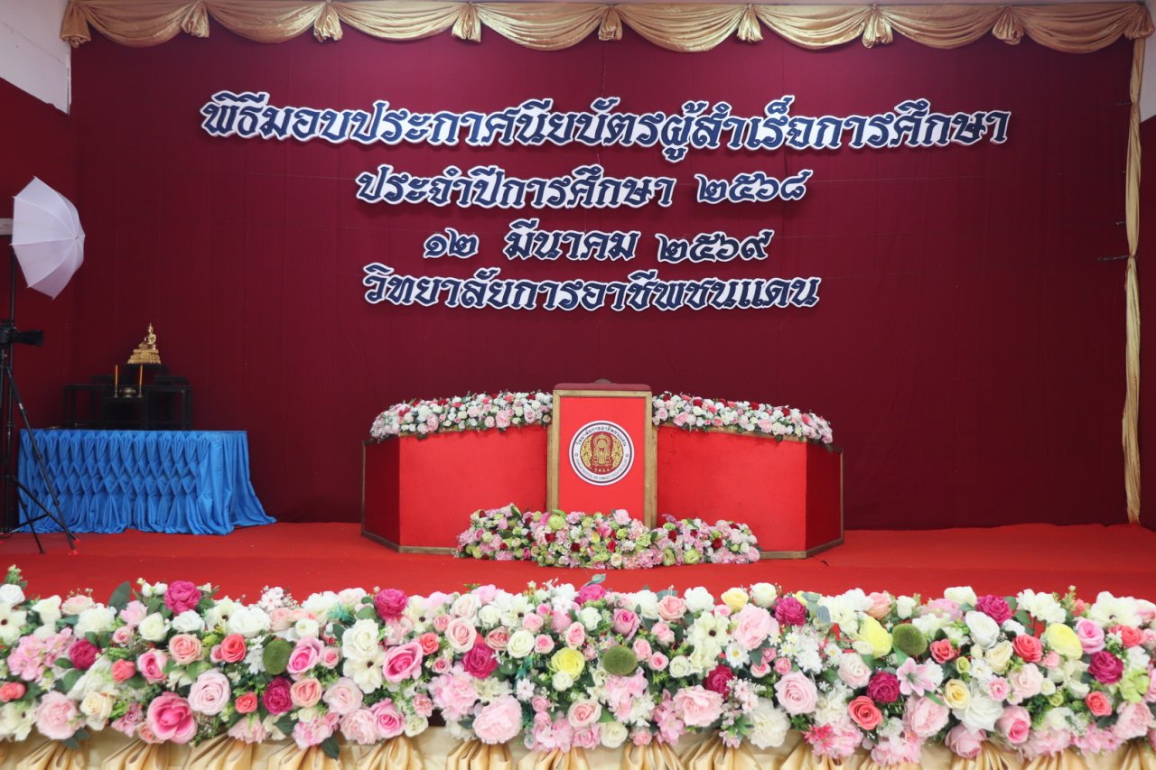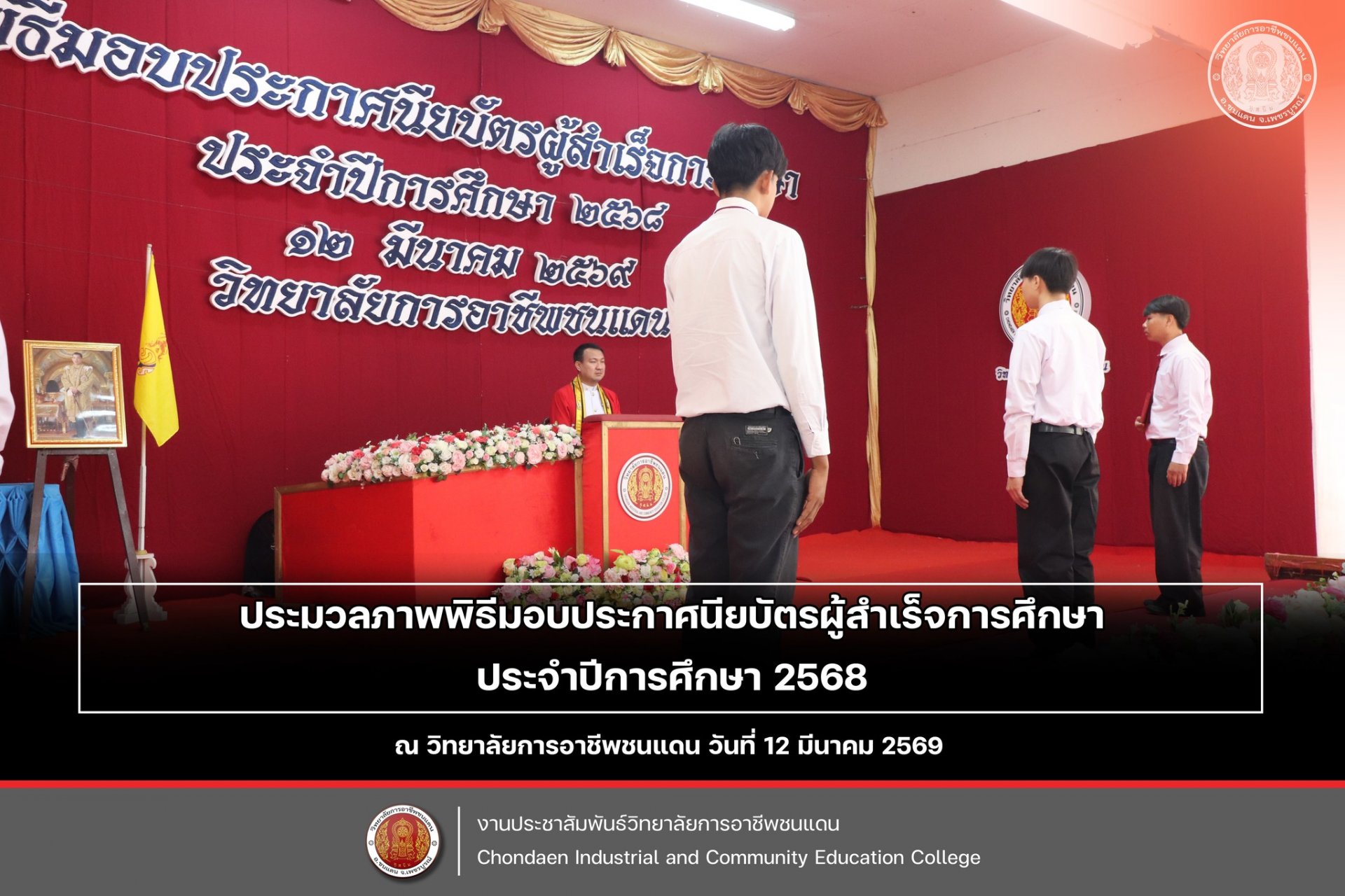 | รายละเอียดกิจกรรม | พิธีมอบประกาศนียบัตรแด่ผู้สำเร็จการศึกษา ประจำปีการศึกษา 2568 ระดับชั้น ปวช.3 และ ปวส.2 ในวันที่ 12 มีนาคม 2569 |