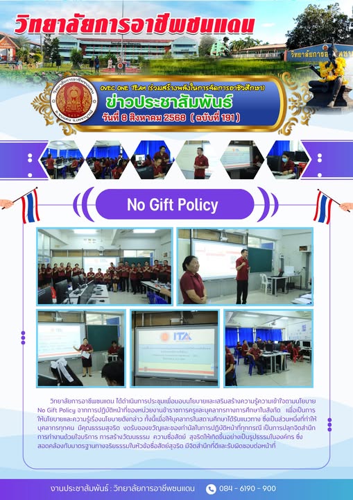 แสดงนโยบายว่าผู้บริหาร เจ้าหน้าที่ และบุคลากร ทุกคนจะต้องไม่มีการรับของขวัญ (No Gift Policy) - ดำเนินการโดยผู้บริหารสถาน ศึกษาหรือผู้ที่ได้รับมอบหมาย หรือผู้ที่ปฏิบัติหน้าที่แทน - เป็นการดำเนินการในปีงบประมาณปัจจุบัน | ข้อมูล o30 ประกาศนโยบายไม่รับของขวัญและของกำนัลทุกชนิด ปี 2568 แต่งตั้งคณะกรรมการดำเนินการประเมินคุณธรรมและความโปร่งใสในการดำเนินงาน ITA 2568 |