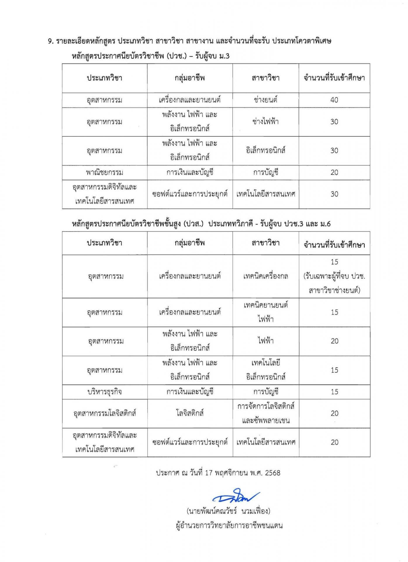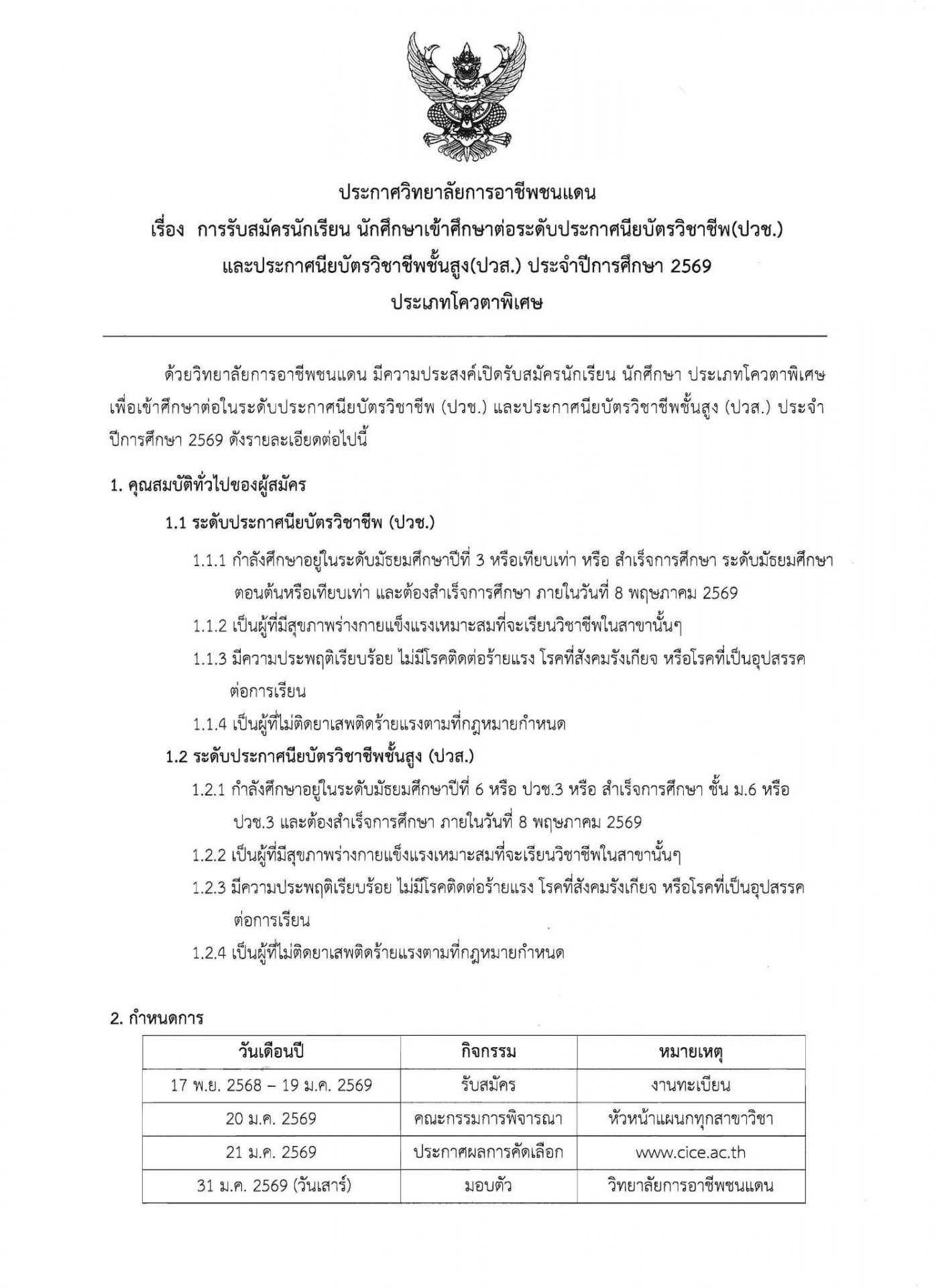 | หัวข้อข่าว | ประกาศการรับสมัครนักเรียน นักศึกษาเข้าศึกษาต่อระดับประกาศนียบัตรวิชาชีพ(ปวช.)และประกาศนียบัตรวิชาชีพชั้นสูง(ปวส.) ประจำปีการศึกษา 2569 |