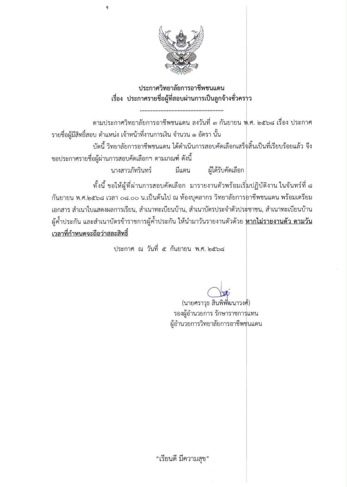 | รายละเอียด | ประกาศรายชื่อผู้ที่สอบผ่านการเป็นลูกจ้างชั่วคราว ตำแหน่งเจ้าหน้าที่ การเงิน |